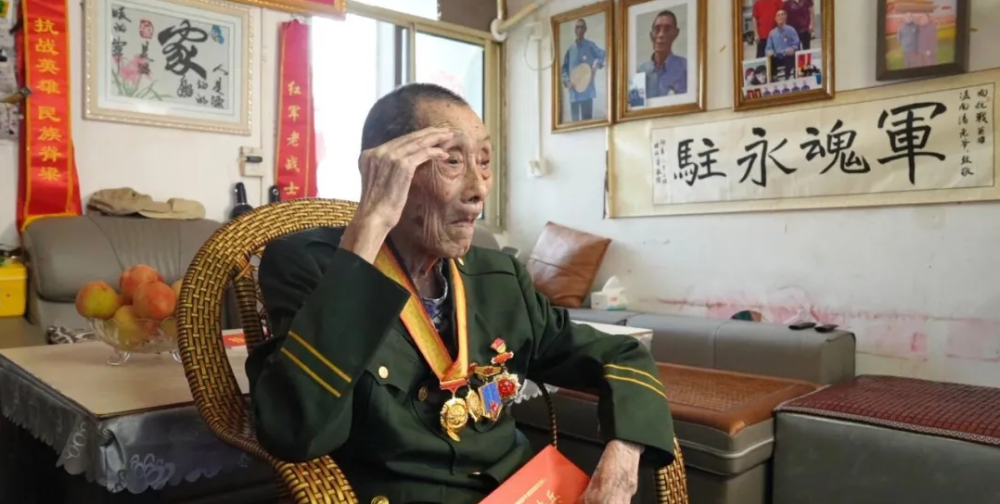 “我们那个时候那么艰苦,现在祖国真是太强大了,是中国共产党的胜利,也是我们中国人民解放军的胜利。”老人身着军装、佩戴纪念章,观看过程中目光始终紧锁受阅方队,多次颤巍巍地敬上军礼,并动情唱起革命歌曲《大刀进行曲》。