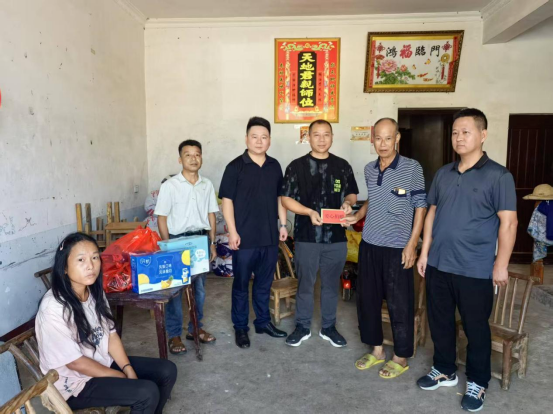 次日上午,余吐书就带着生活物资和慰问金逐一登门探望村内困难户。他仔细询问困难群众的健康状况和生活需求,鼓励他们保持信心。受助的老人擦拭着眼角,动情地说:“太感谢你了!这么多年来,你是第一个来看望我们的老板。”面对受助家庭的感谢,他谦逊地说道:“要感谢党委、政府,是他们这份重视影响了我。”