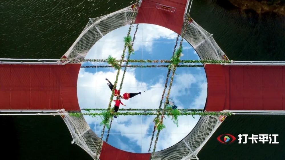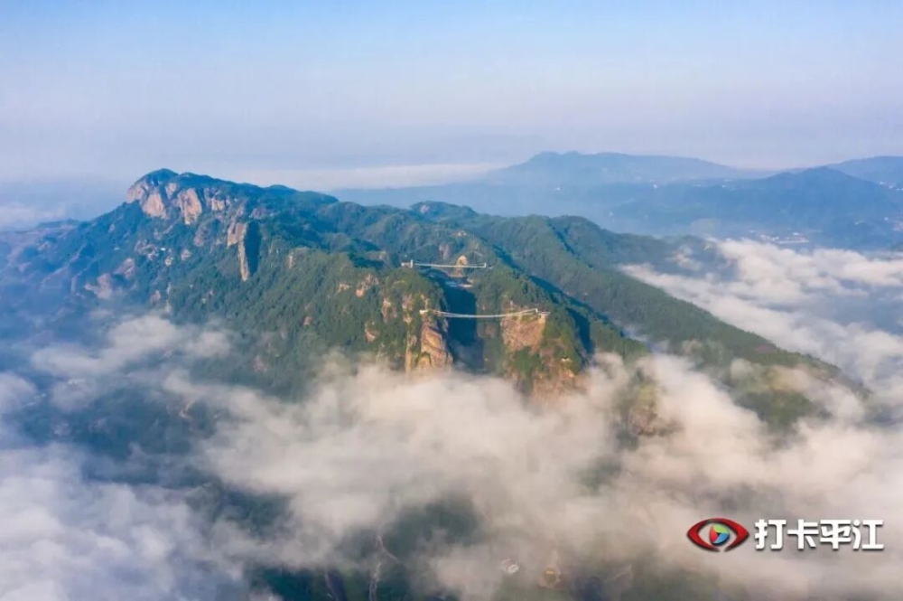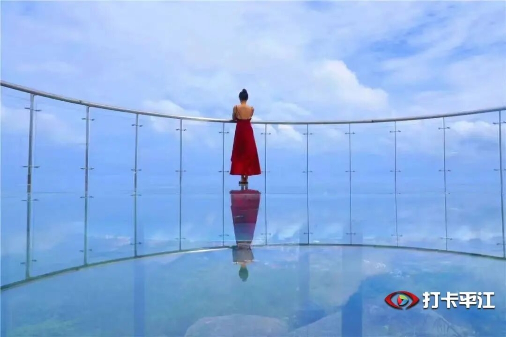 步入景区,一眼就能看到标志性打卡建筑“悬崖天眼”,这是世界最大三叶草玻璃高空观景平台,以360°悬空设计,让你伸手似触碰云端,低头可见层叠丹霞。