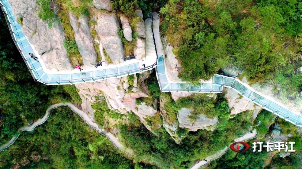 踩上高空玻璃桥,300米全透明桥面下,峡谷裂隙清晰如刀刻,低头可见林海苍茫,抬头便是晴空万里。