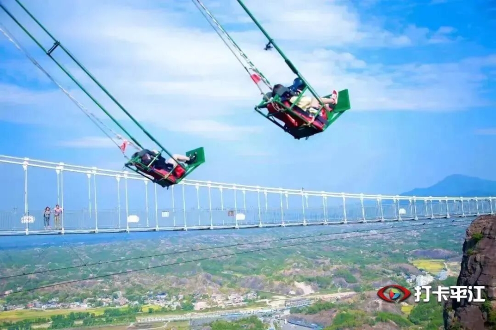 在180米高的绝壁边缘坐上悬崖秋千,荡出的瞬间仿佛挣脱地心引力,丹霞林海在脚下飞速掠过,尖叫声与风声交织成勇敢者最刺激的乐章。