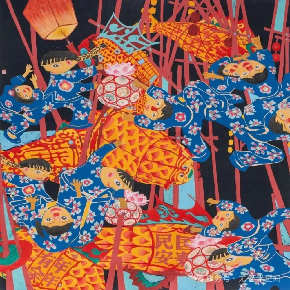 姜维的作品挣脱了学院派的规训,用近乎本能的色彩与构图,传递着强烈的生命感知力。这份原始而真诚的表达,恰恰与农民画“源于生活、真挚直接”的核心精神产生了深层共鸣。“艺术终要回到人本身,”姜维说,“在平江的这些画里,我看见了同样鲜活的生命。”