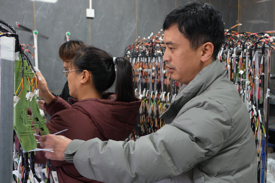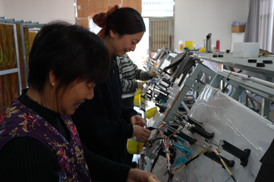 紧接着,技术难关又来了。由于团队完全零基础,且多数是村里上了年纪的乡亲,第一批产品就面临大量返工。“最开始的时候,我对象,还有爸妈每天陪我返工到凌晨一两点。”苏林林回忆创业初期的艰辛。