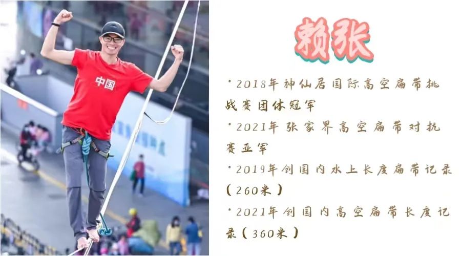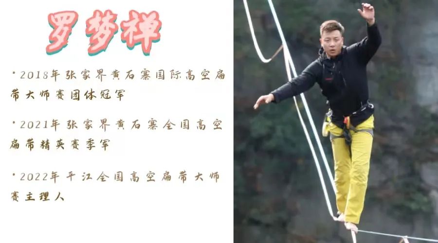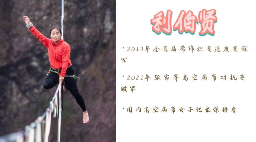 在高空中悬起的一条松弛的长细扁带(2.5)厘米宽。有保护的行走在山峰之间、楼宇之间、江河之上,让观看表演的人,肾上腺飙升!为之惊叹!