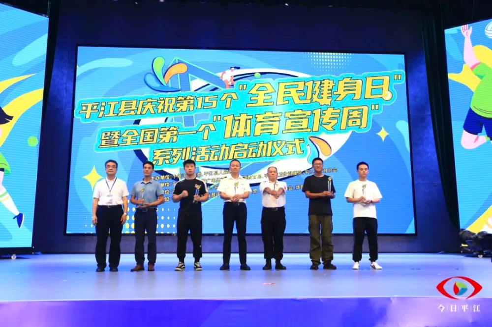 8月8日,平江县举行庆祝第15个“全民健身日”暨全国第一个“体育宣传周”系列活动启动仪式。县委书记李勇出席并宣布活动启动,县委副书记、政法委书记鲁勇致辞,县领导彭喜丰、李三军、潘如意出席并共同为2023年平江县全民健身先进单位、先进个人、全民健身达人颁奖。