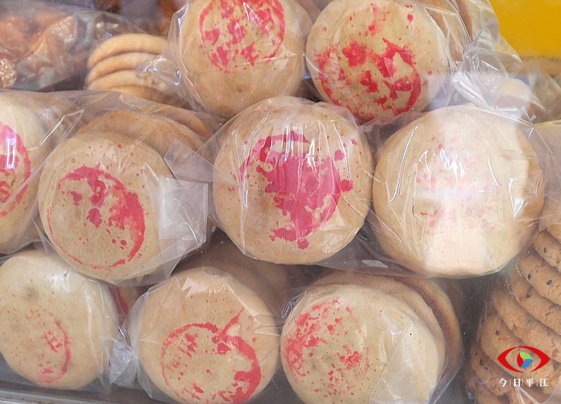 除了“网红辣条”外,还有在零食届比较小众的加义法饼,是很多本地人儿时的回忆,发酵后的面团揉成小团,定制的小木锤将面团锤成小圆饼,刷子去除多余的面粉… …。