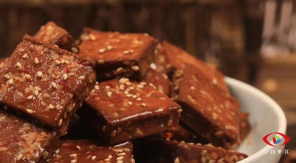 来平江一定还要尝尝长寿酱干,它不知俘获了多少人的味蕾,将特质的豆腐干用鸡汤、茴香、桂皮等卤制,再用炭火烘烤使其入味,生产出方寸大小、芳香四溢的豆腐干卤香入味、耐嚼爽口、老少皆宜。