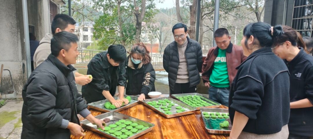 对于平江人来说,没吃过“蒿jiào”的春天是不完整的!村民陈江才说,清明节在外工作的亲朋好友回来祭祖,围坐在一起做“蒿jiào”,他们又再次品尝到了家乡的味道。