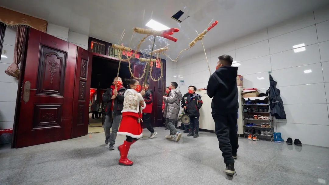 声声祝福中,“火龙”又走进了下一户人家,“火龙啧火龙啧进哒屋,家家户户享幸福……”(何晶晶)