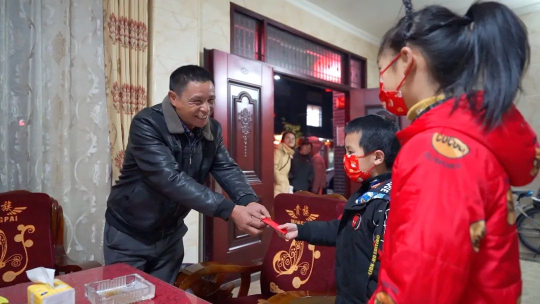悠长的童谣声中,主家会拿出早准备好的“赏封”给前来拜年的小孩子,小孩子们则会给主家,送上最真挚的祝福。“恭贺您家过个红年咯!”“恭喜发财!”“万事如意!”