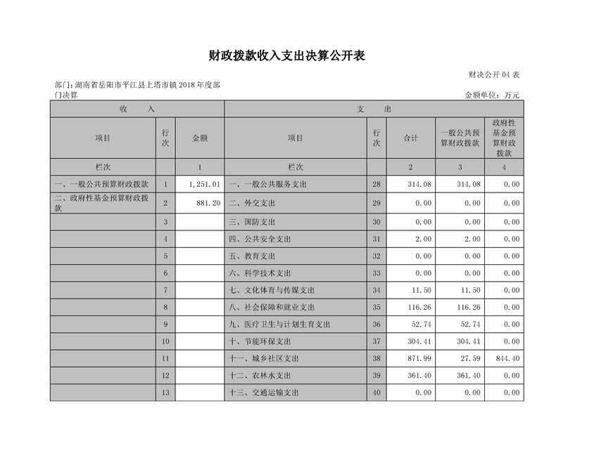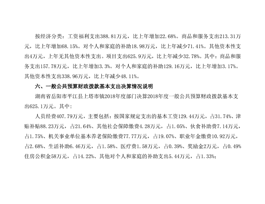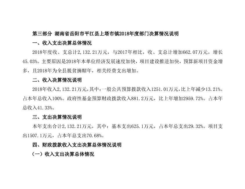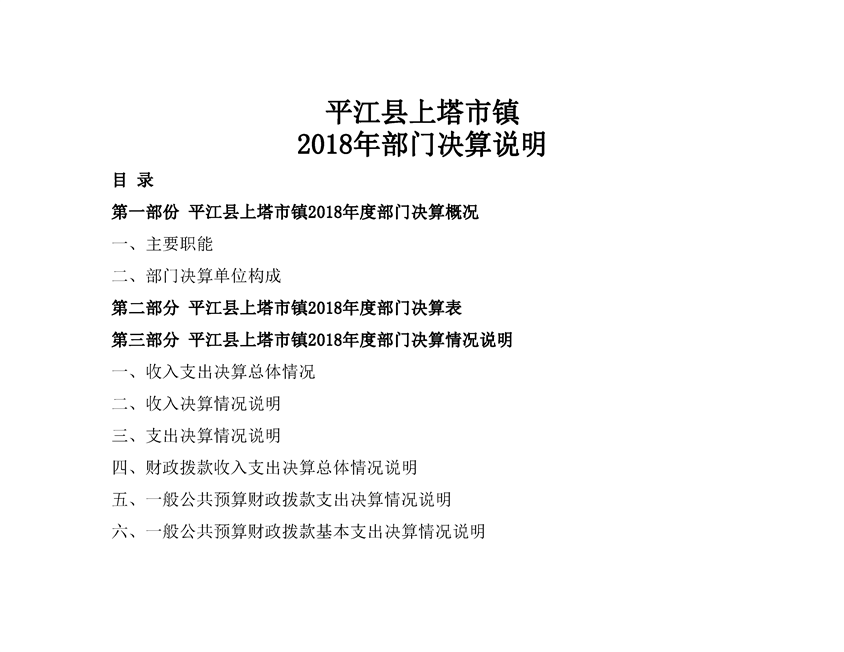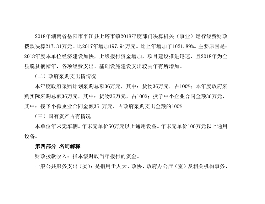 上塔市镇2018年度部门决算编报说明