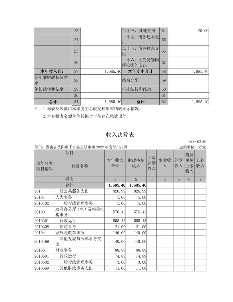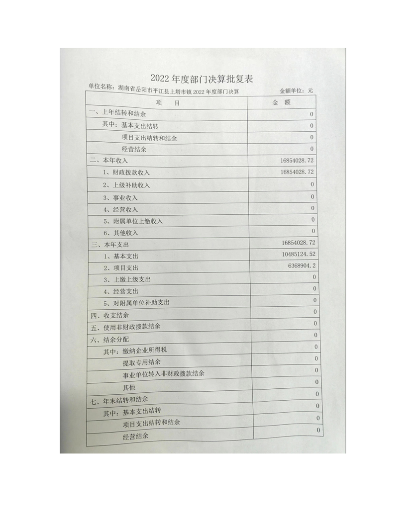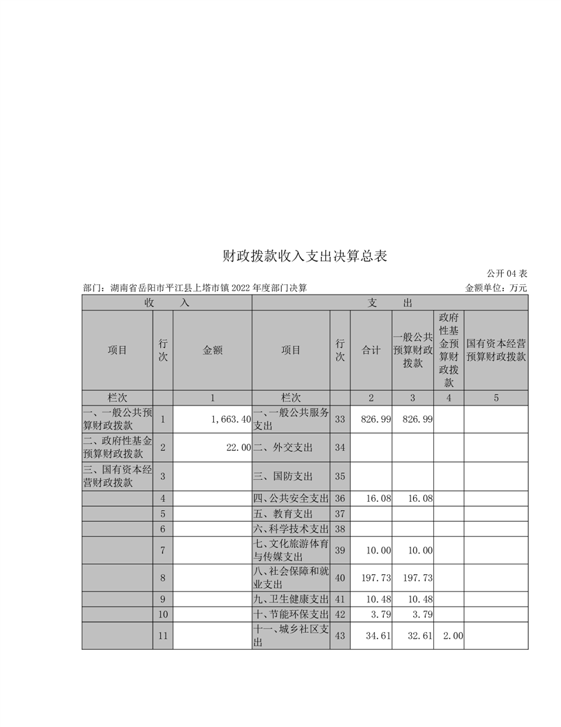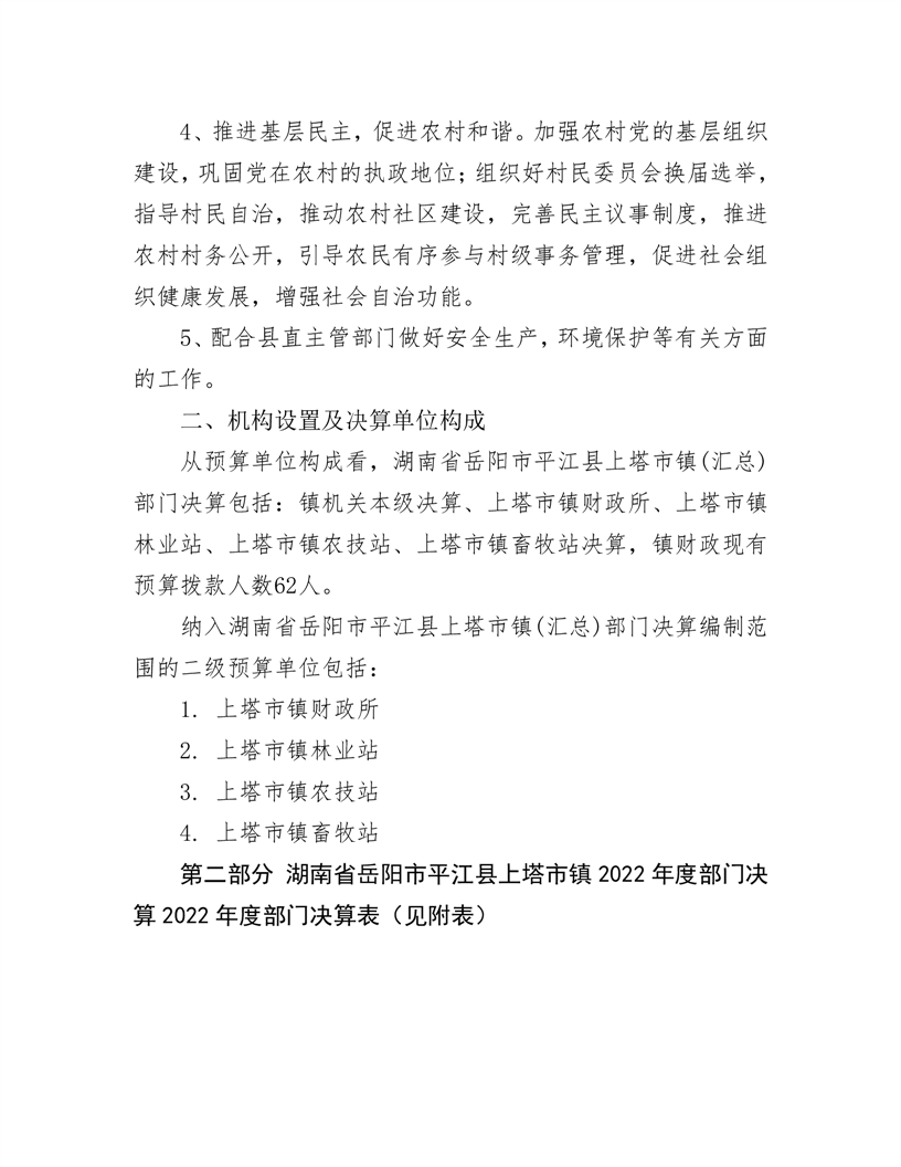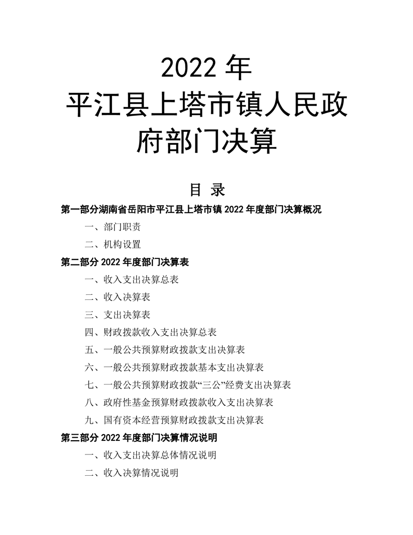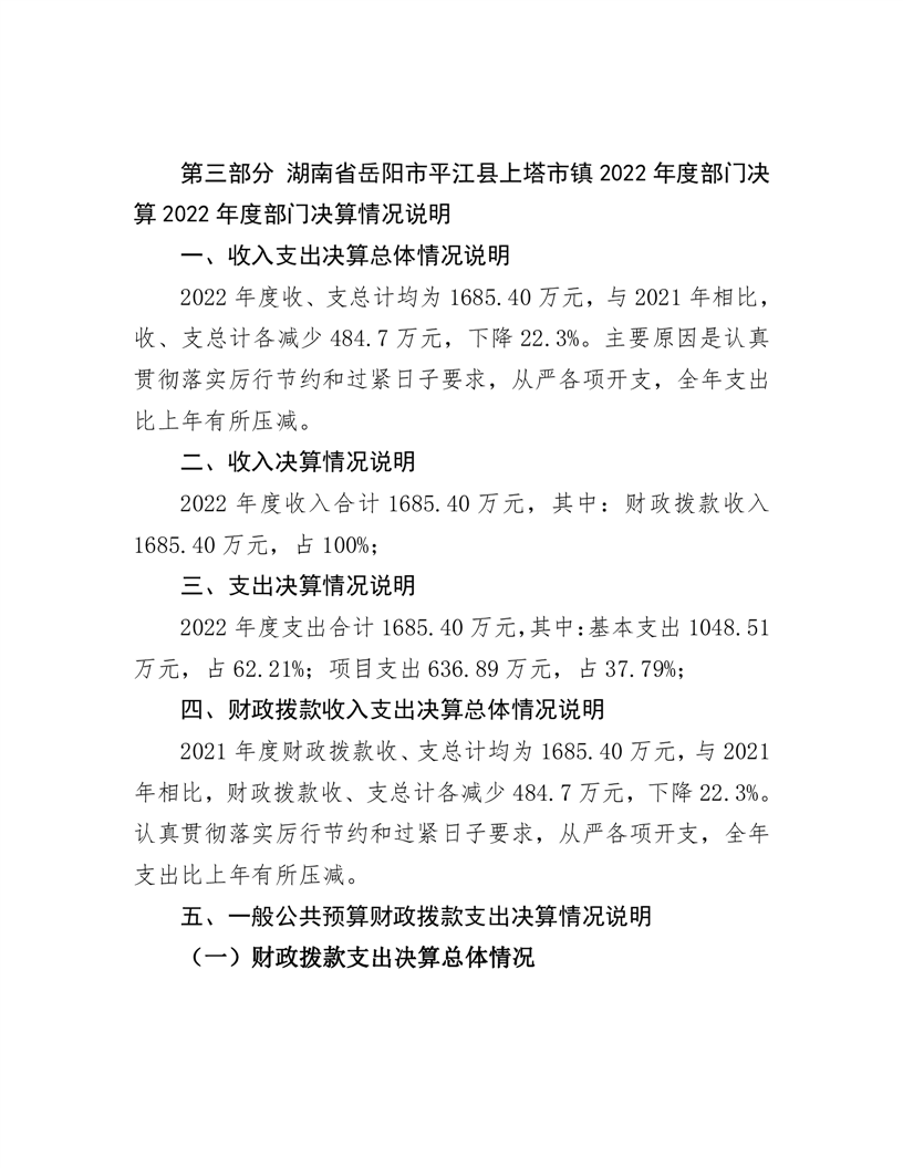 2022年平江县上塔市镇人民政府部门决算