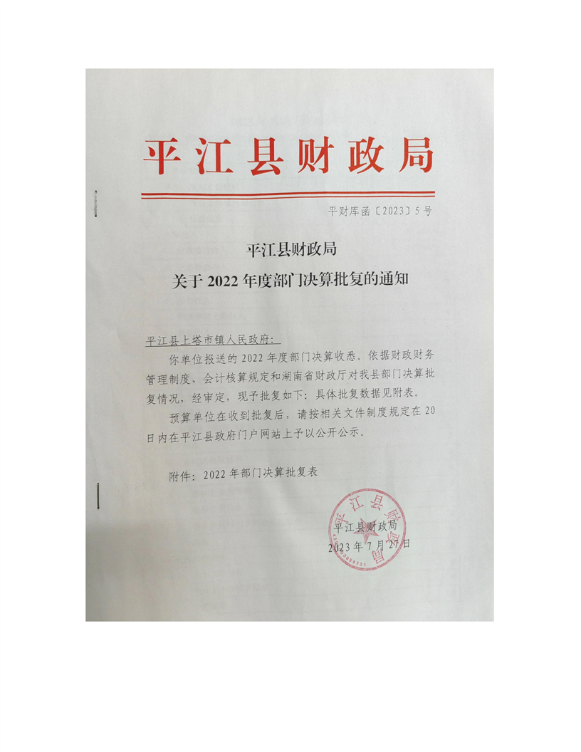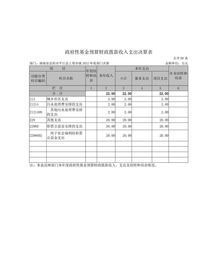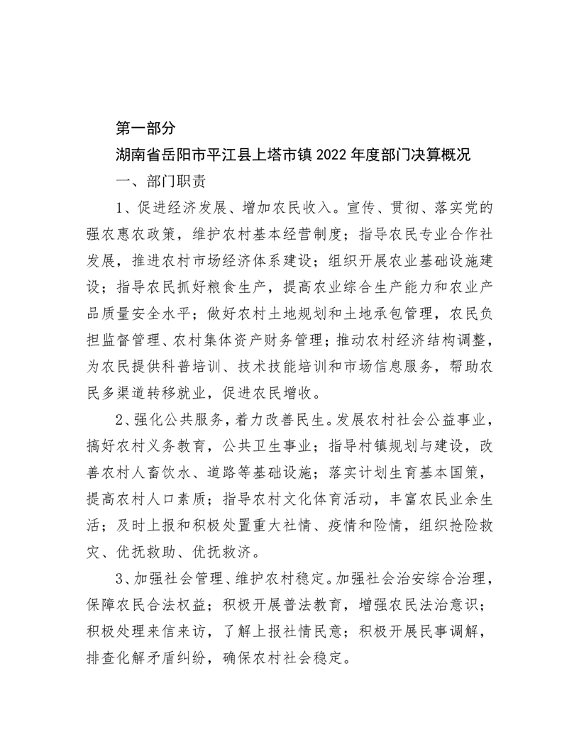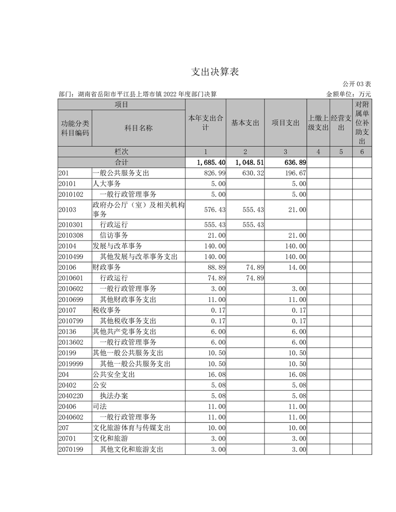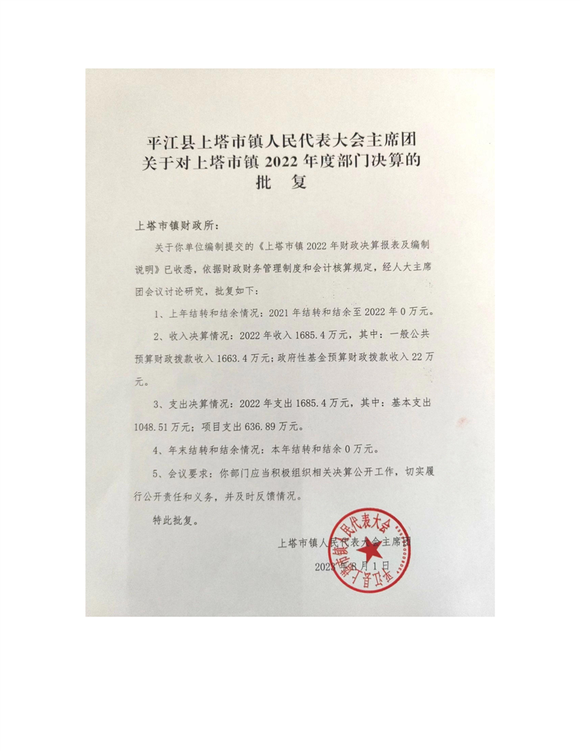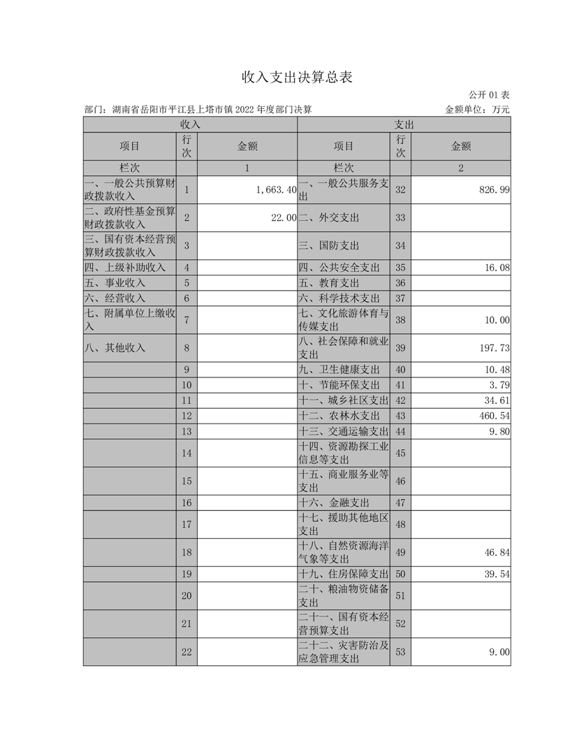 2022年平江县上塔市镇人民政府部门决算