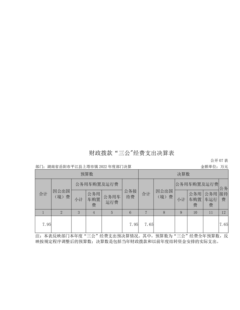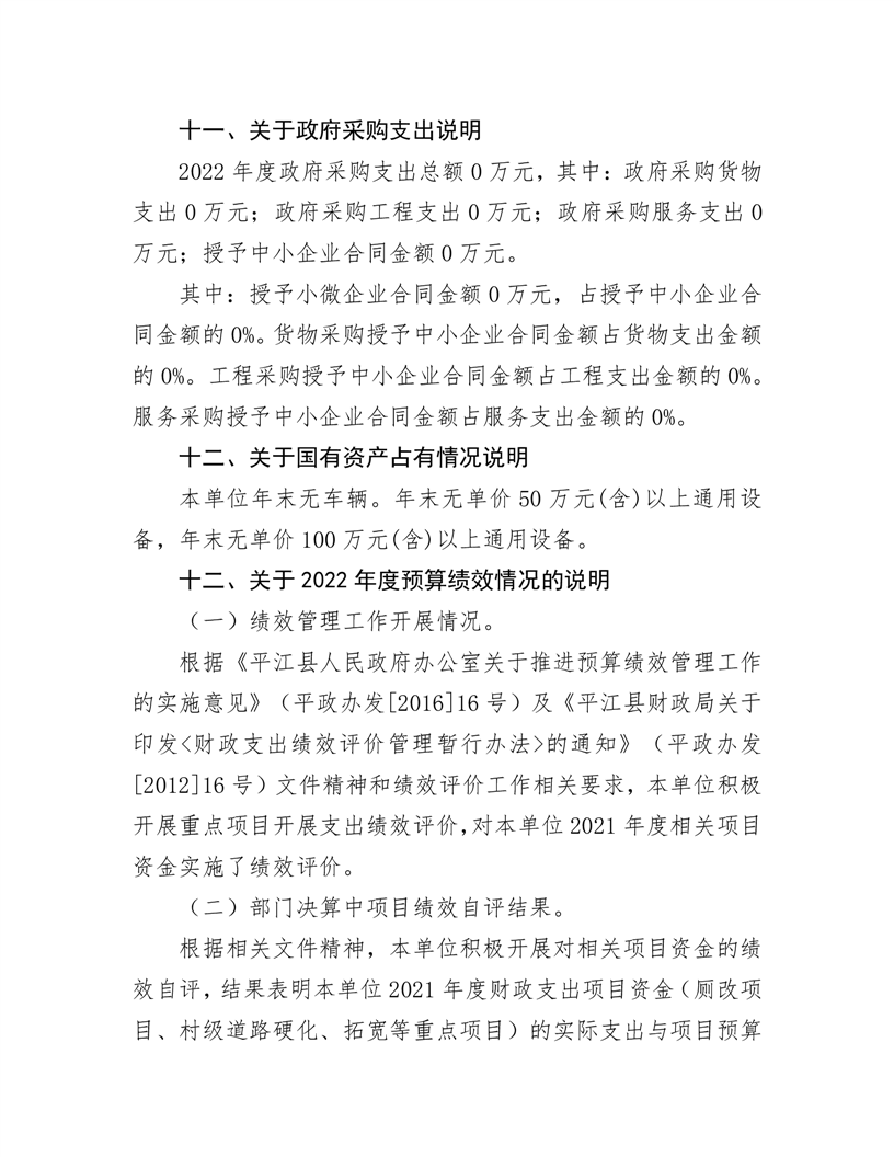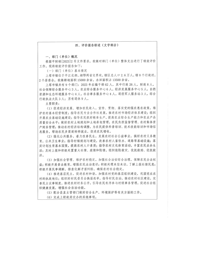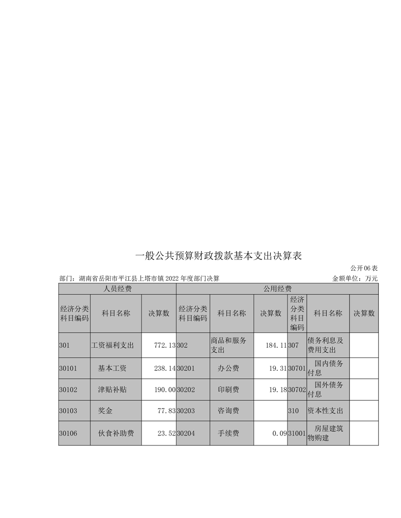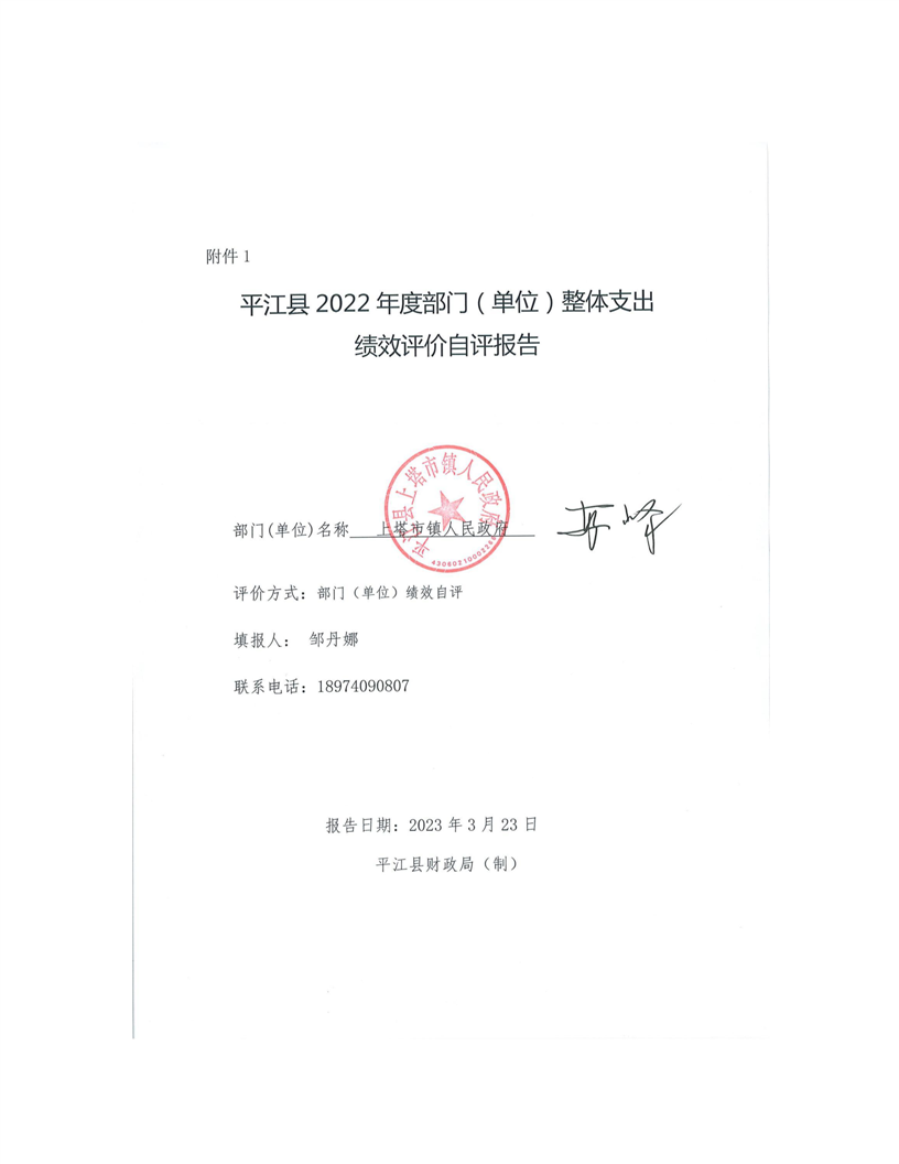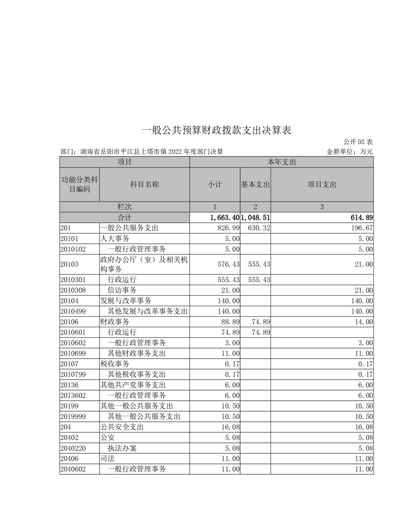 2022年平江县上塔市镇人民政府部门决算