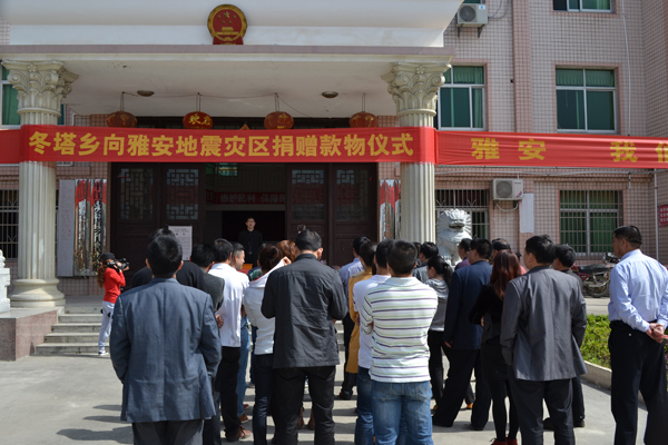 4月27日上午,冬塔乡举办向雅安地震灾区捐赠款物活动。