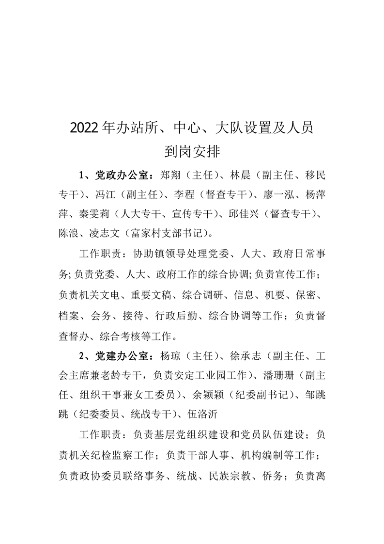 安定镇2022年办站所、中心、大队设置及人员到岗安排