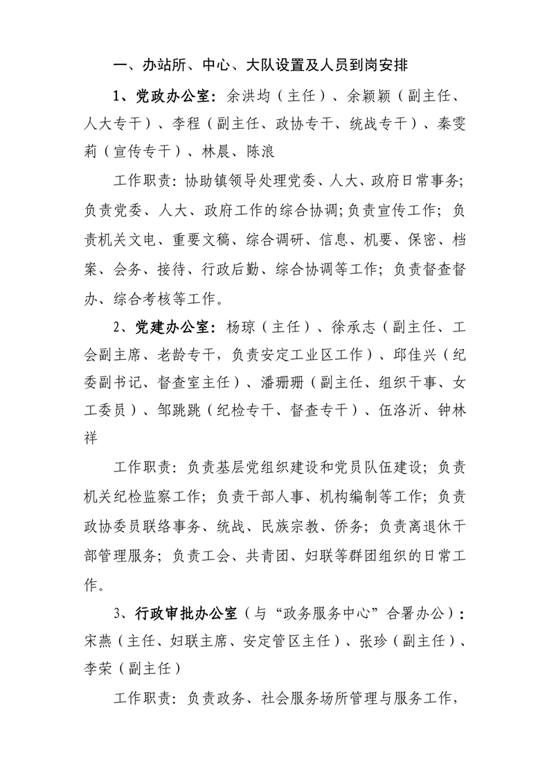 安定镇2023年办站所、中心、大队设置及人员到岗安排