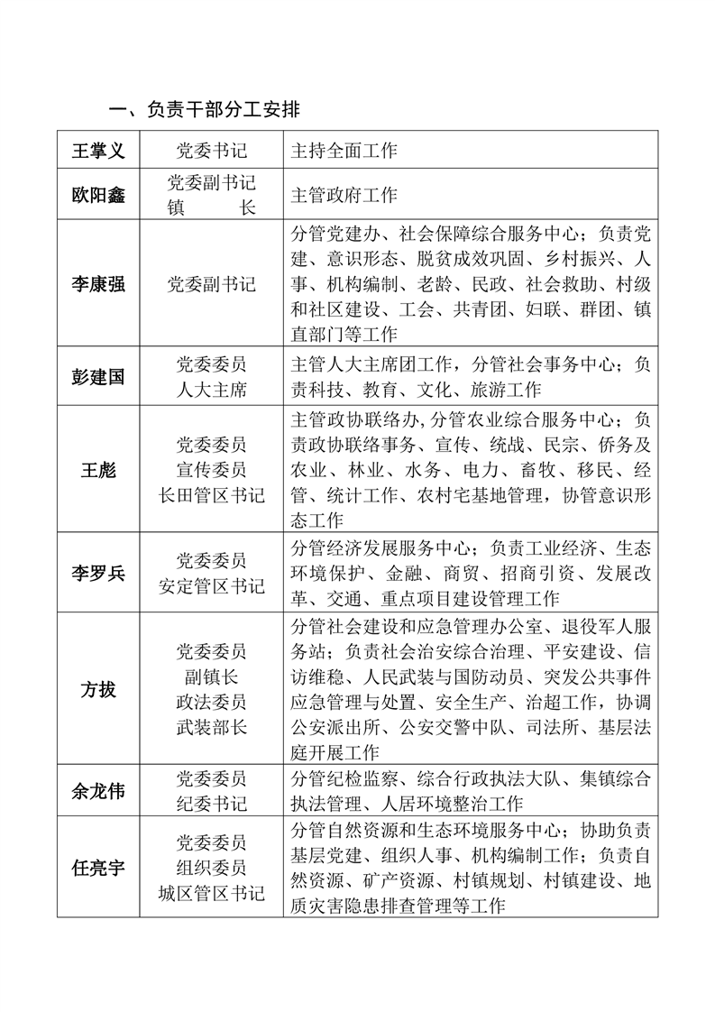 安定镇2022年党政班子分工安排