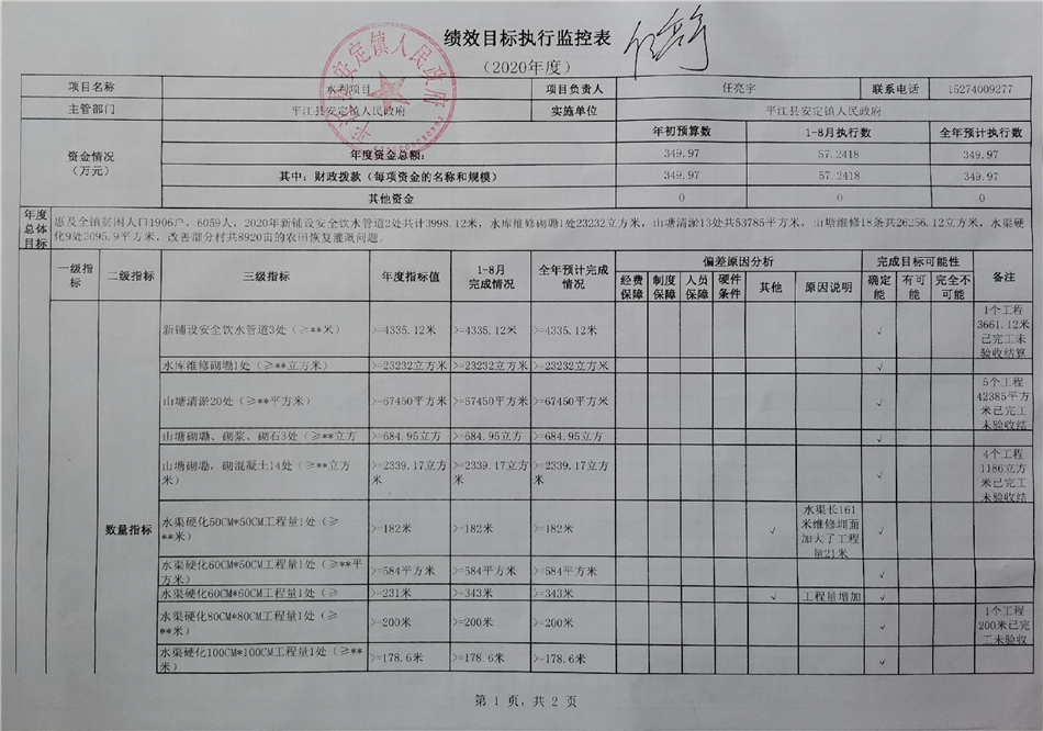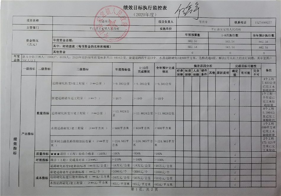 安定镇2020年统筹整合涉农资金项目库预算绩效监控