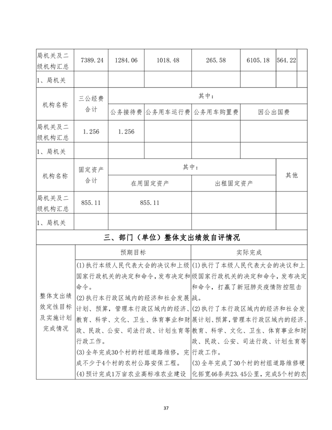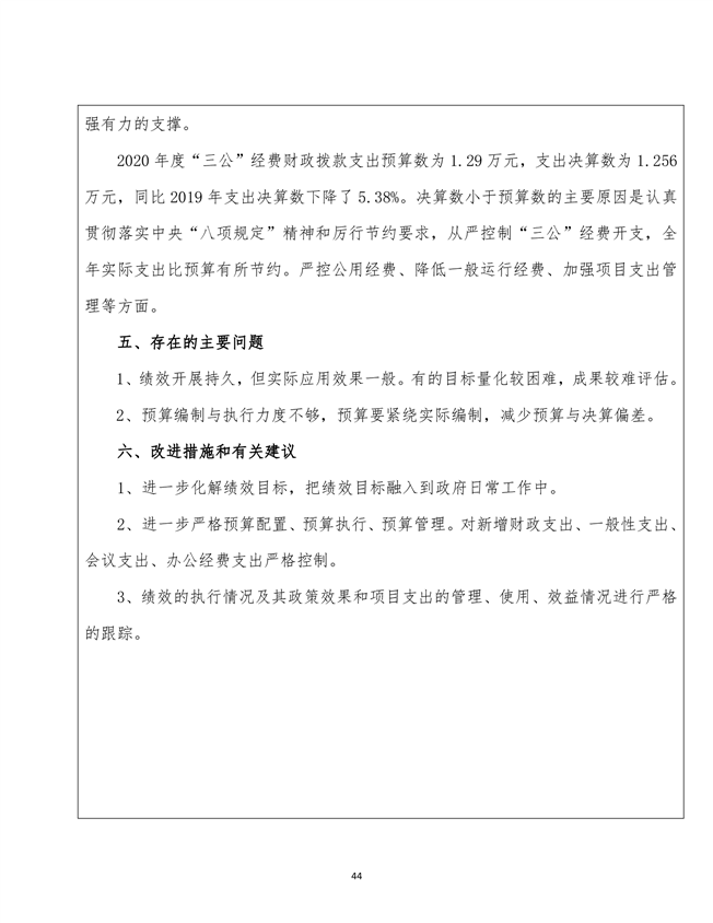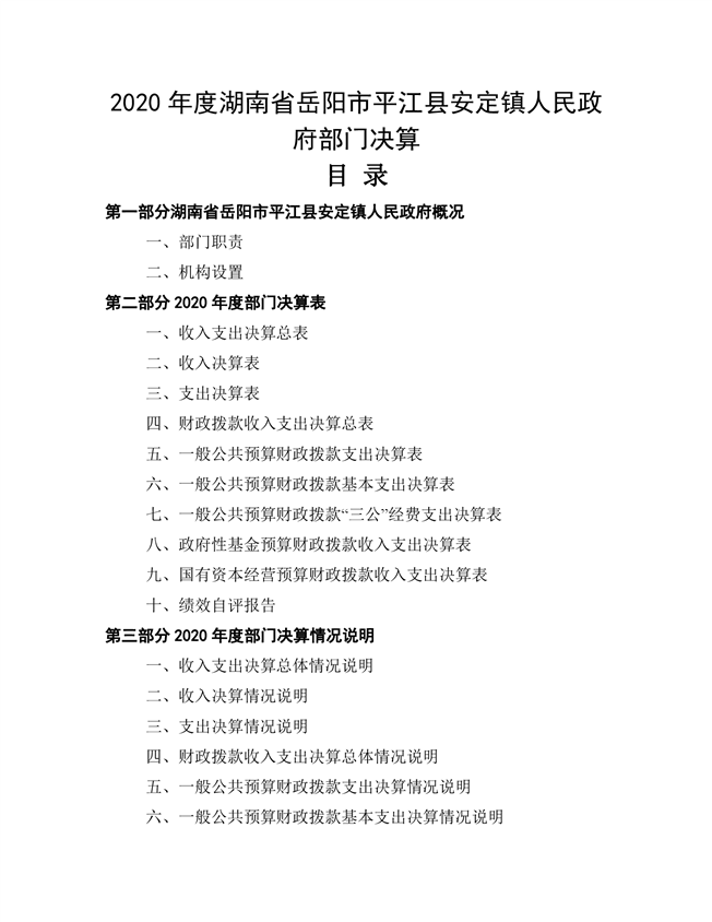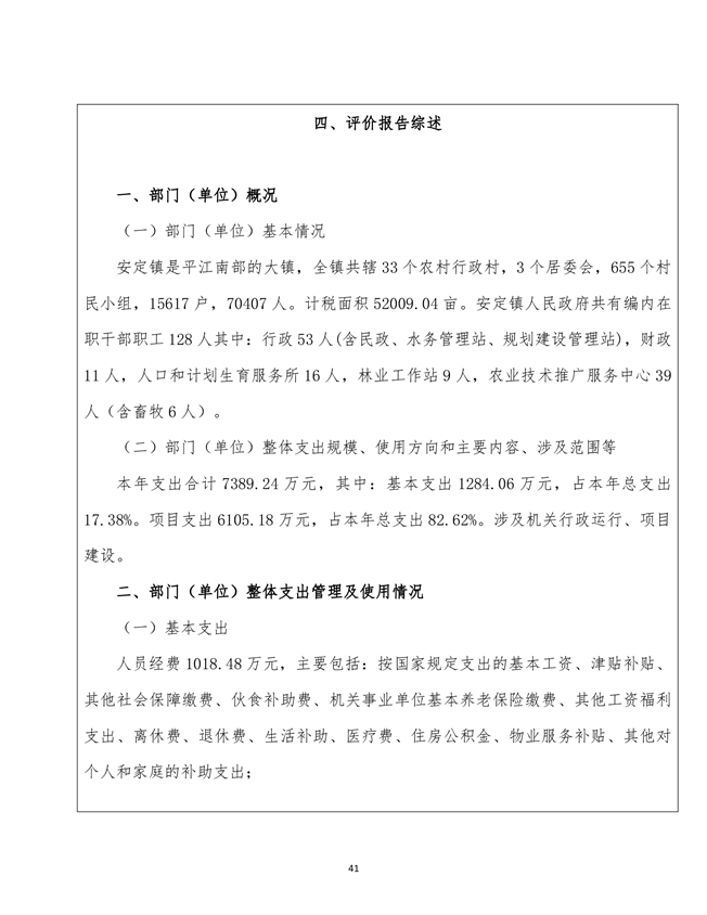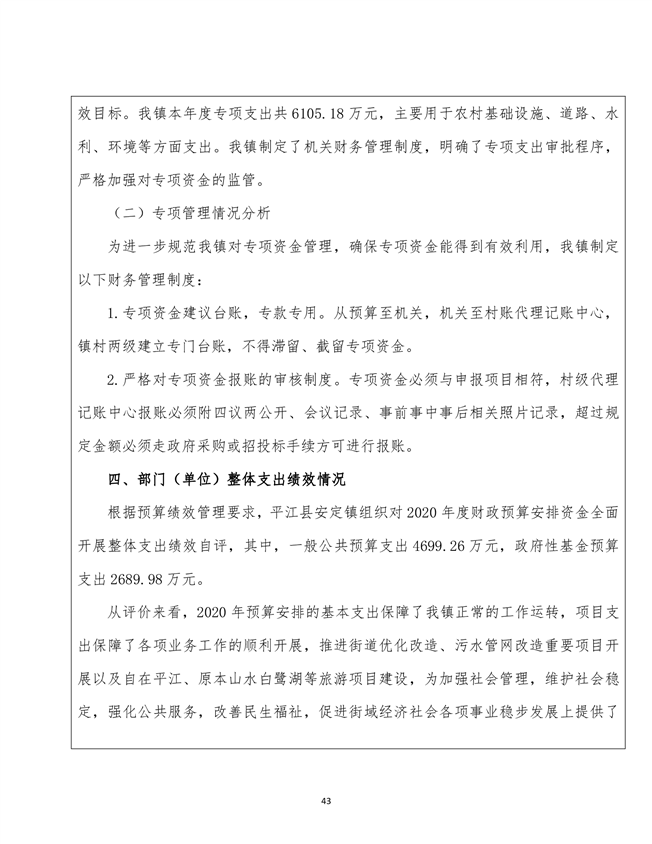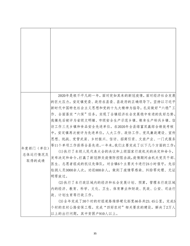 2020年度安定镇人民政府部门决算及整体绩效目标评价表