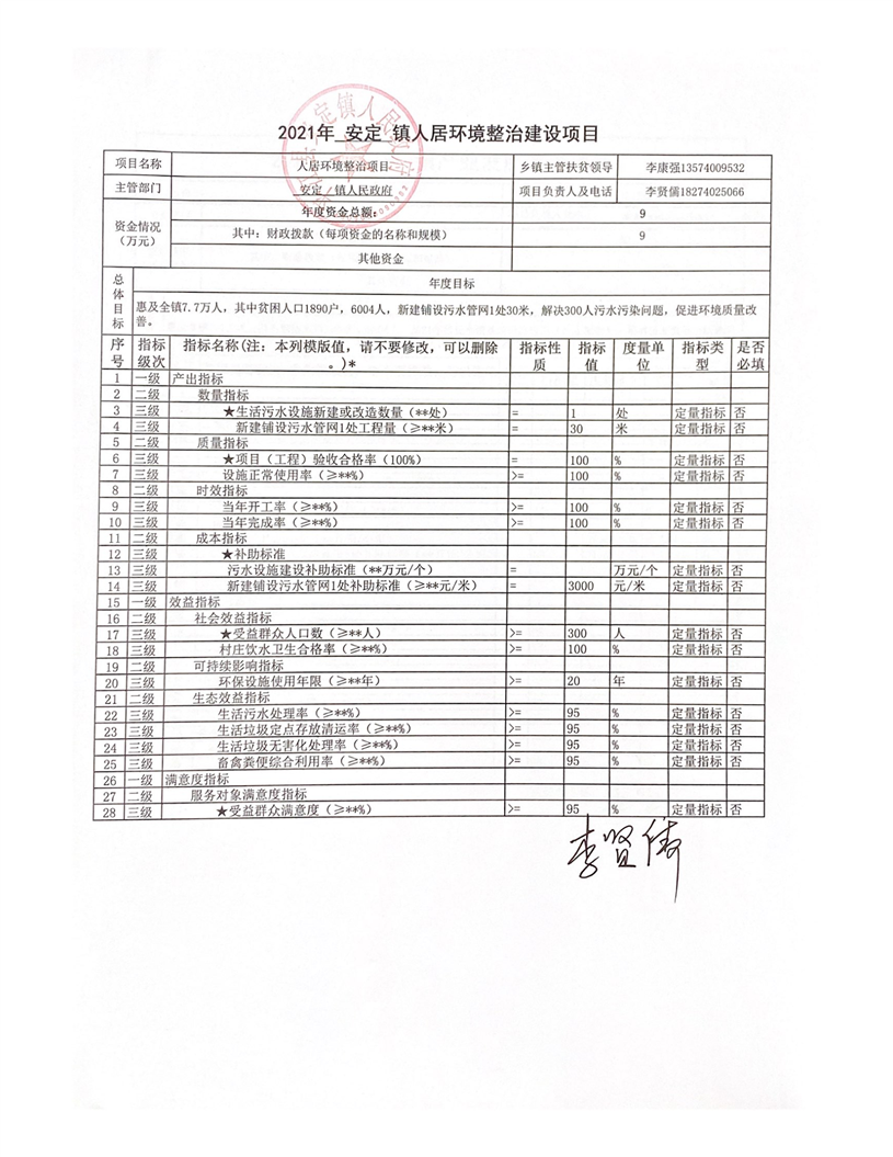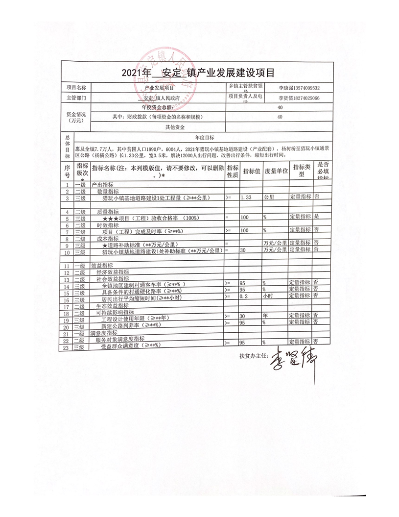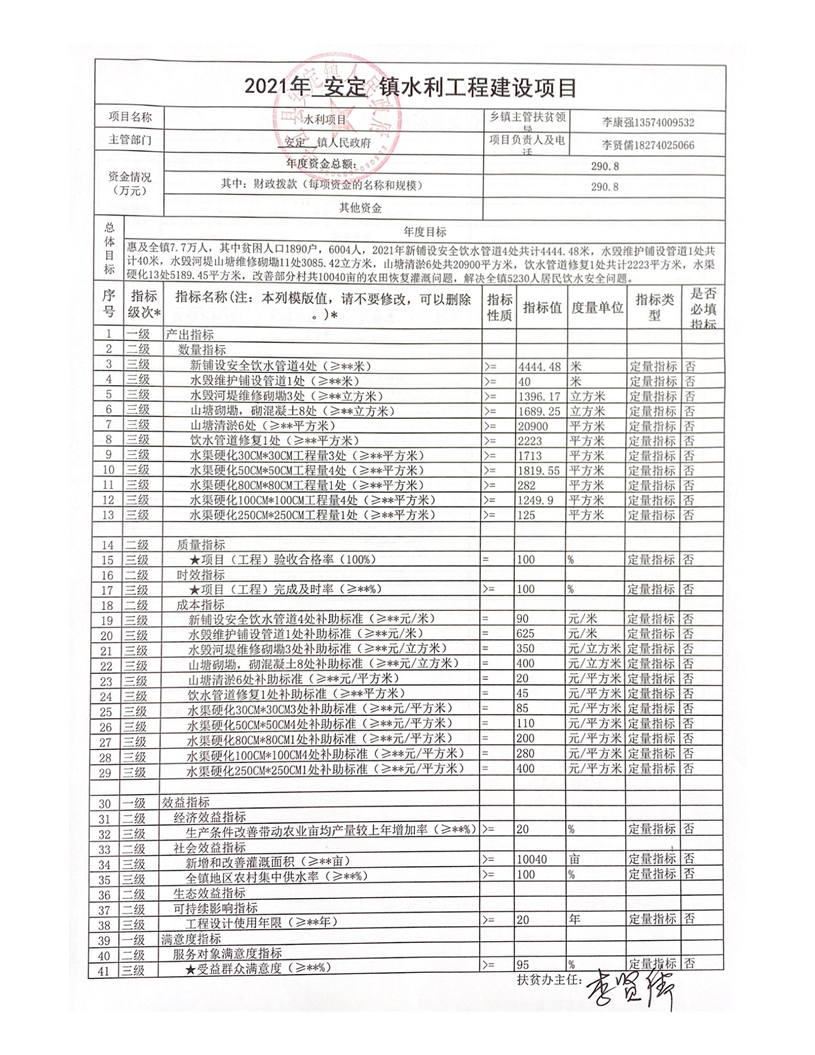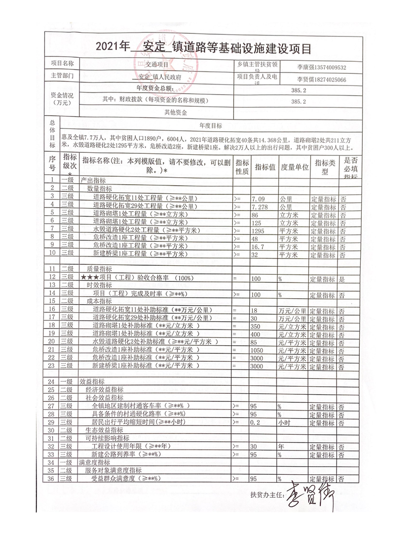安定镇2021年统筹整合涉农资金项目库预算绩效申报