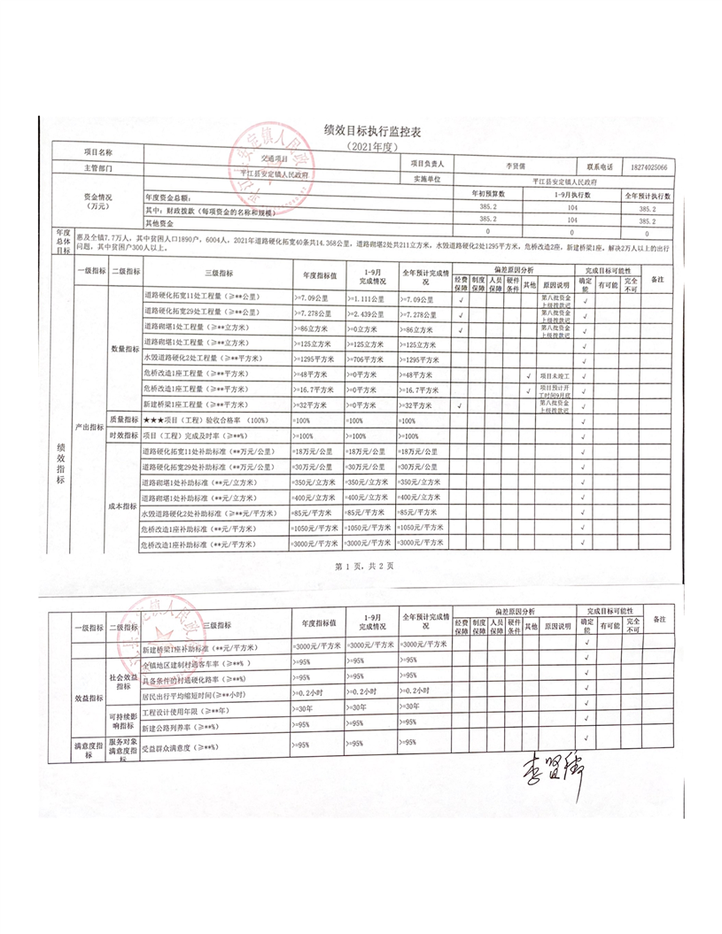安定镇2021年统筹整合涉农资金项目库预算绩效监控