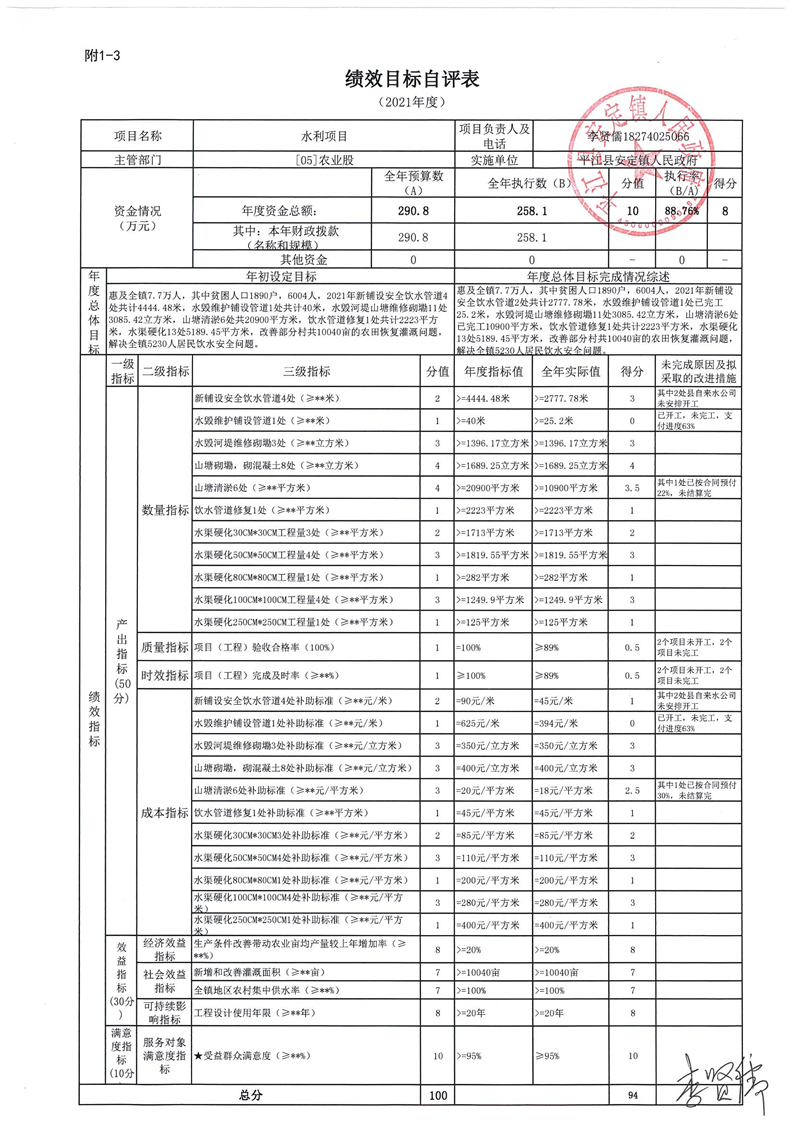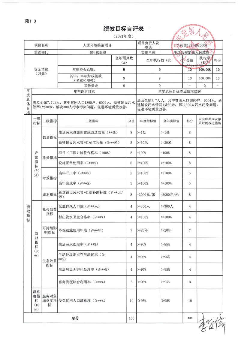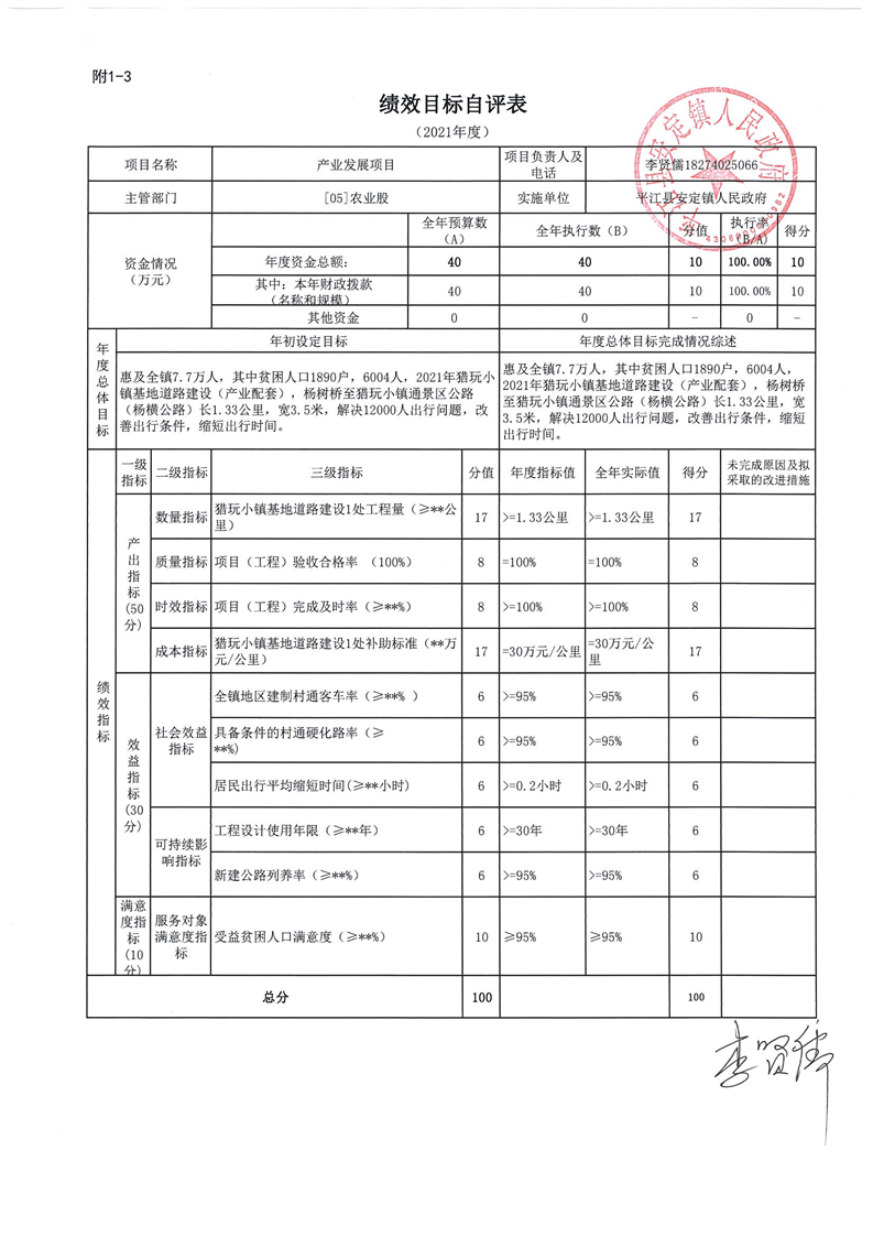 安定镇人民政府2021年度统筹整合使用财政涉农资金项目绩效自评表