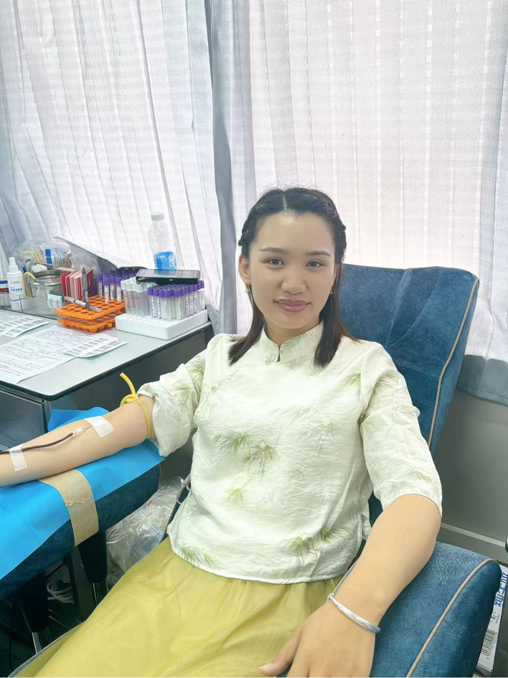 在采血区,经验丰富的“献血达人”正分享着自己的故事。54岁的曾亚玲翻开贴满献血记录的红本子:“11年累计献了3700毫升,够给两个成年人全身换血了。”她轻拍身边略显局促的年轻人,“别怕针头,想想这袋血可能救回一个车祸伤员,甚至延续新生儿生命。”这番话让不少初次参与者挺直了腰板。