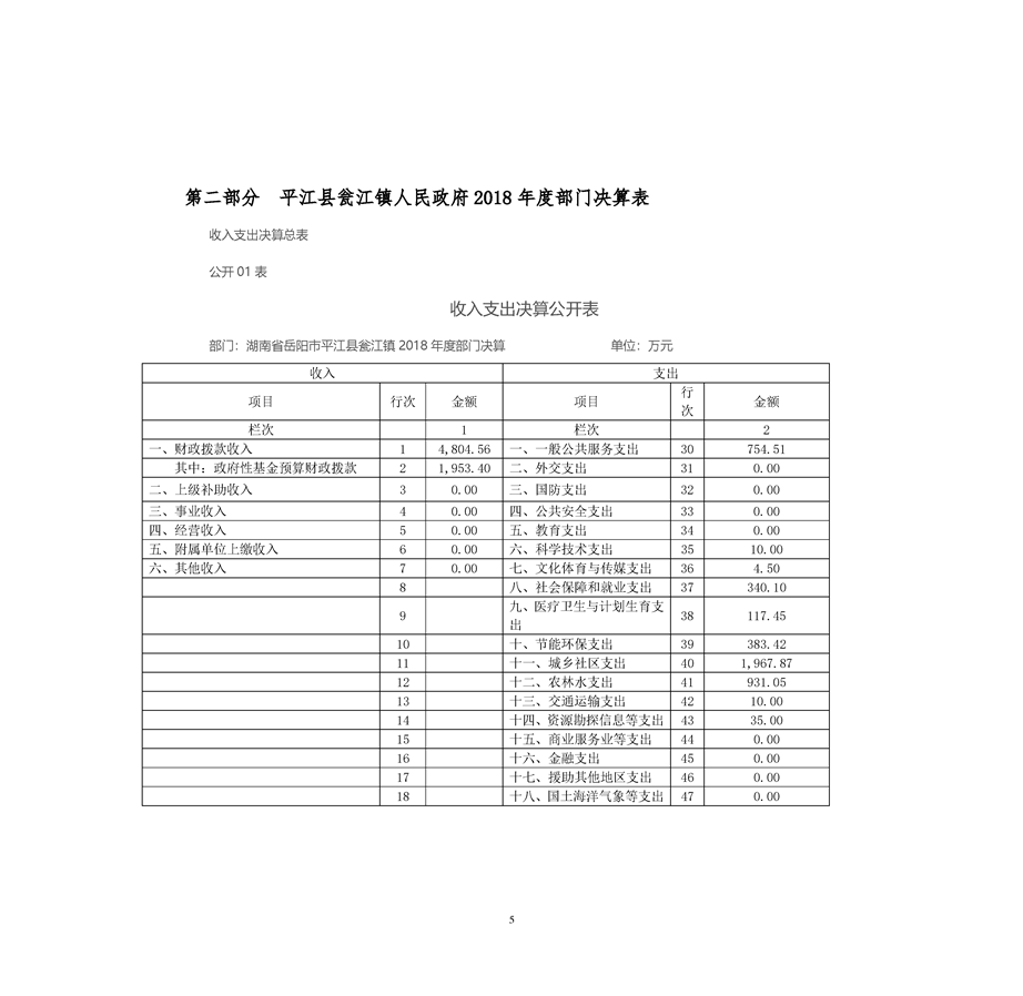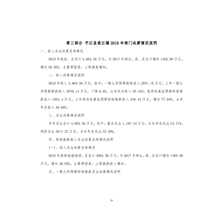 瓮江镇2018年度部门决算编报说明