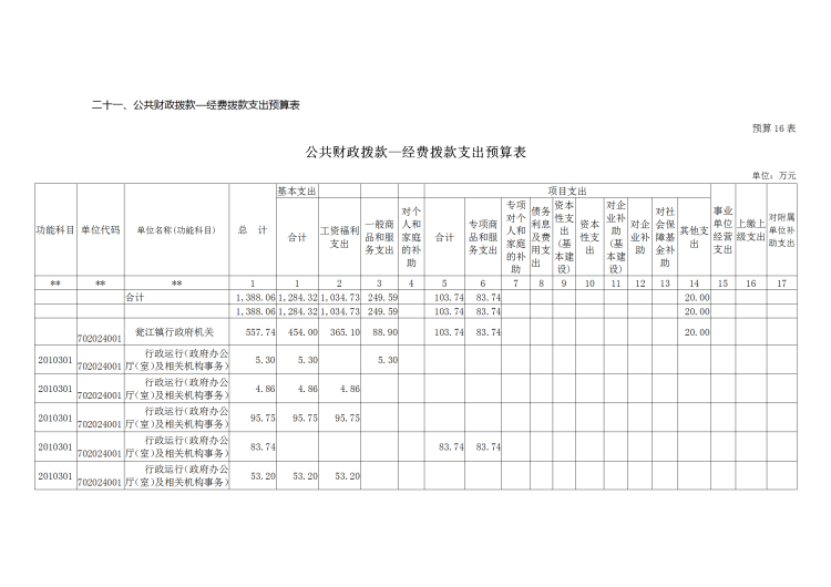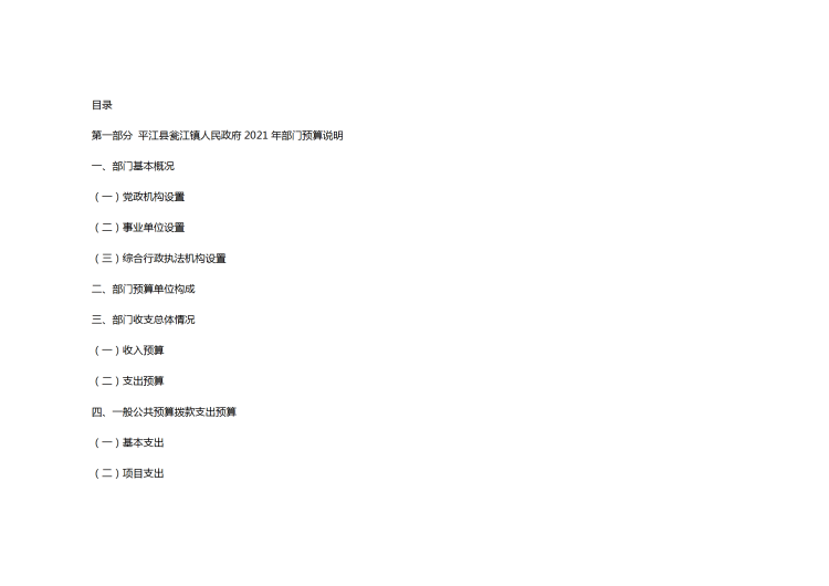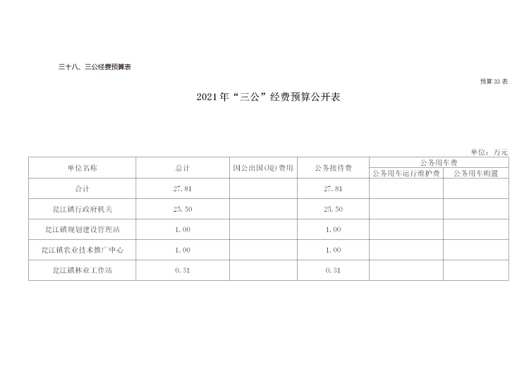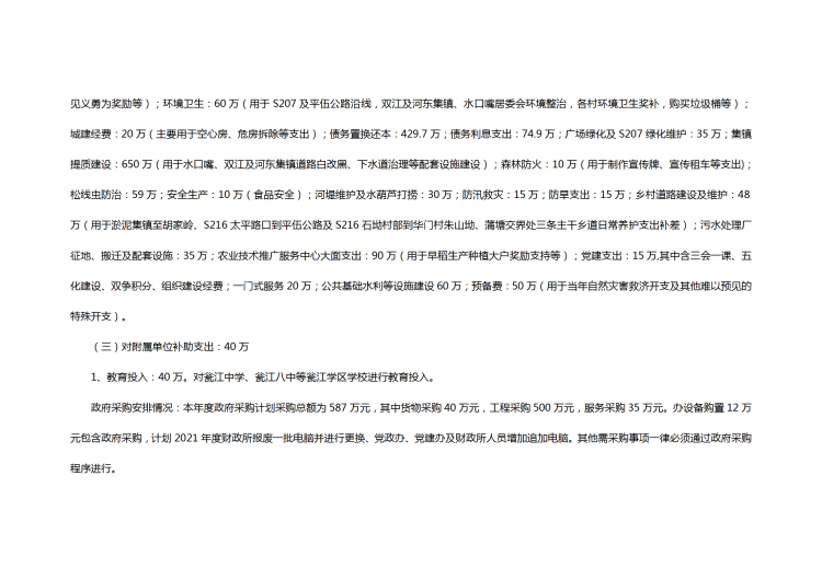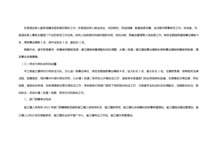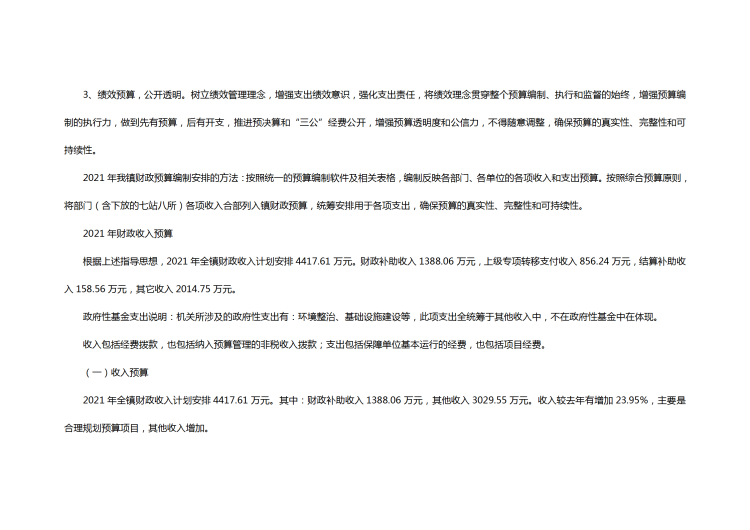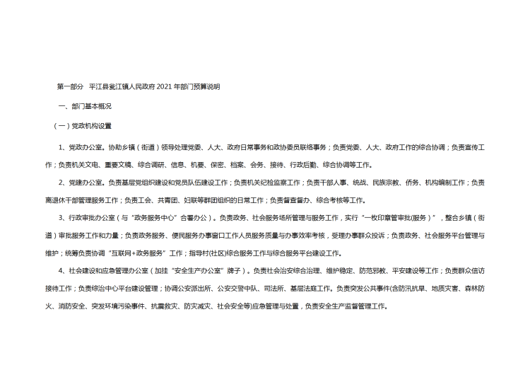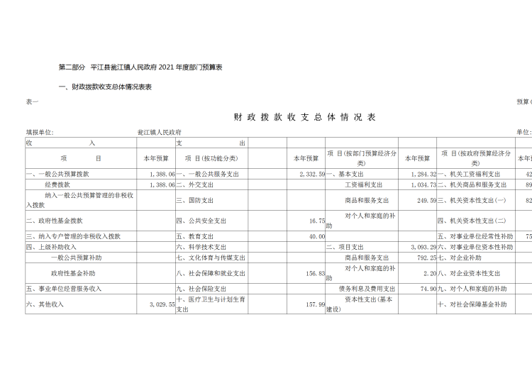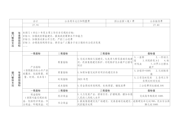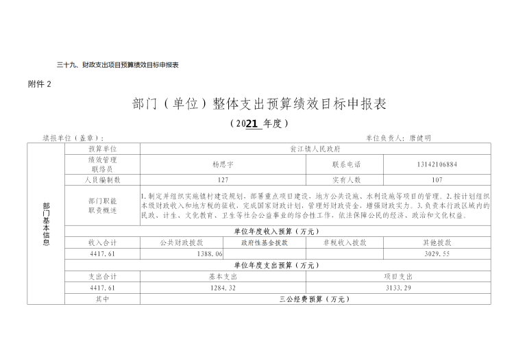 瓮江镇2021年预算编制说明及整体绩效目标公开公示