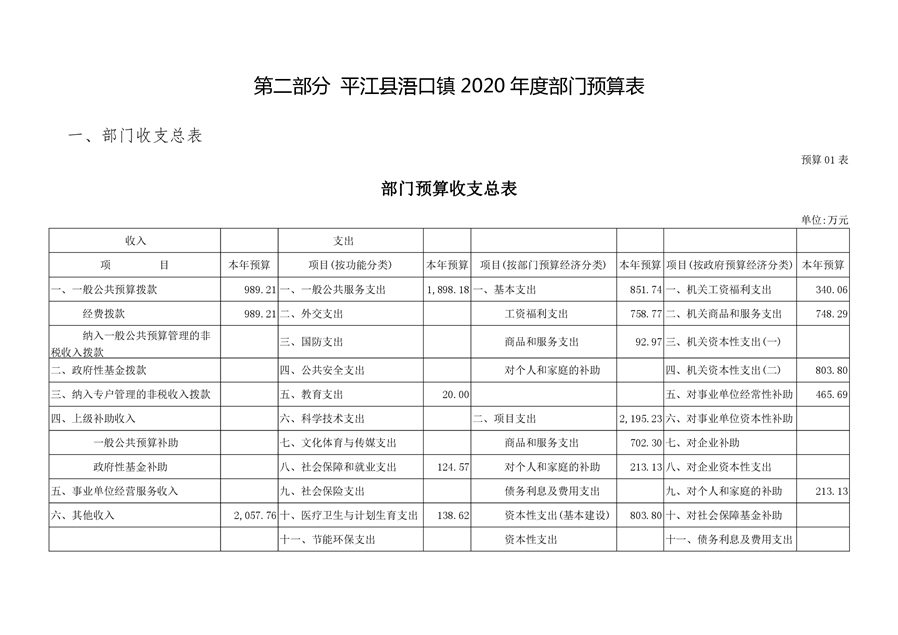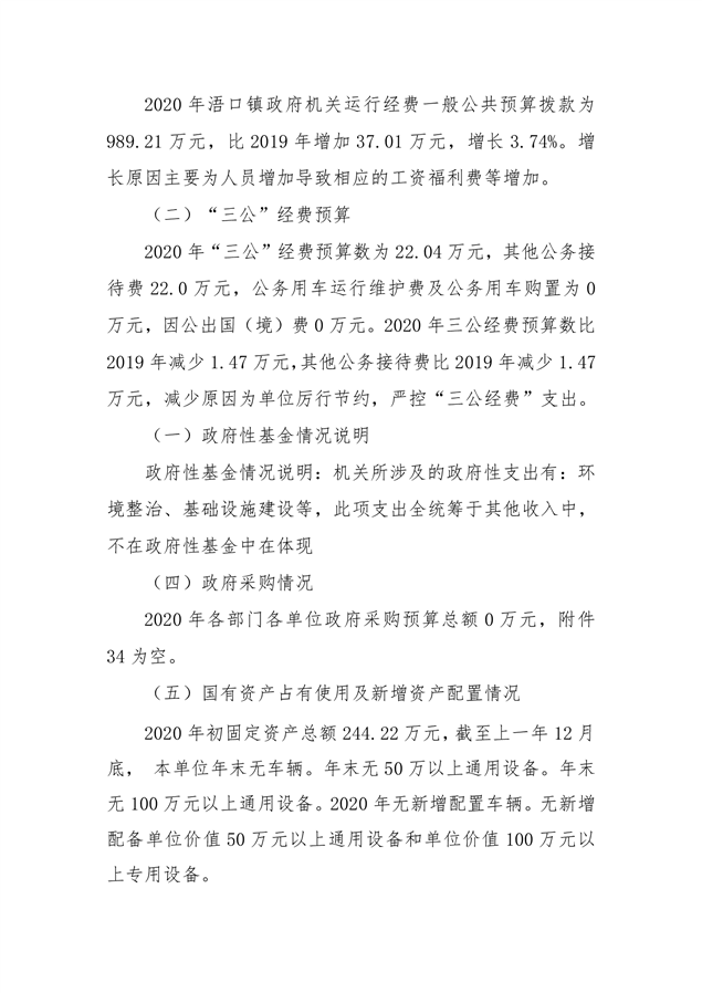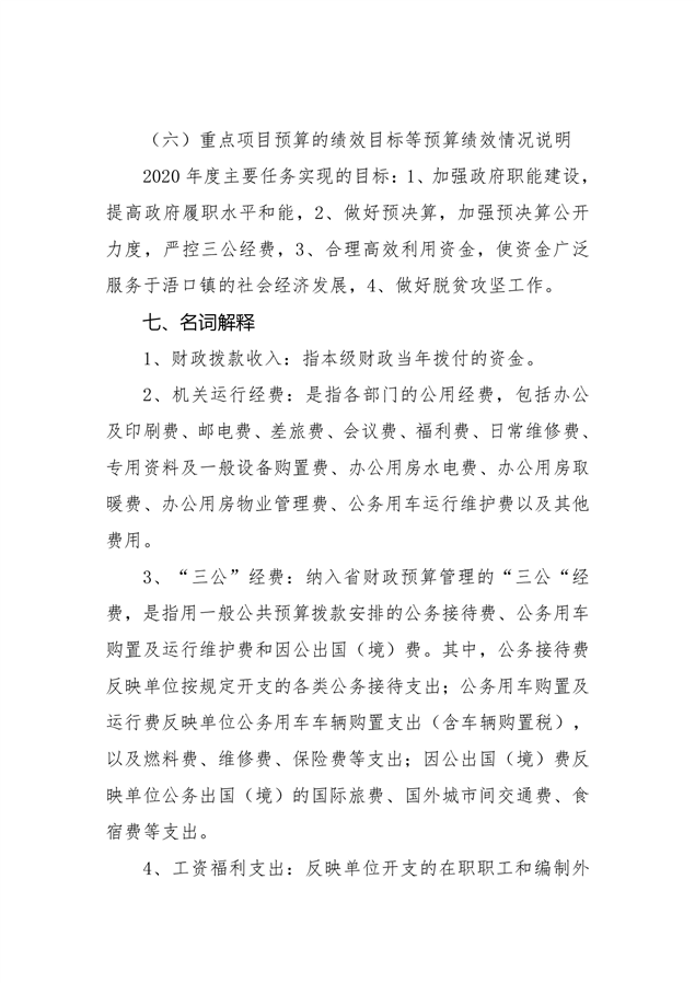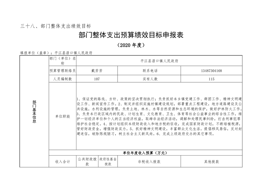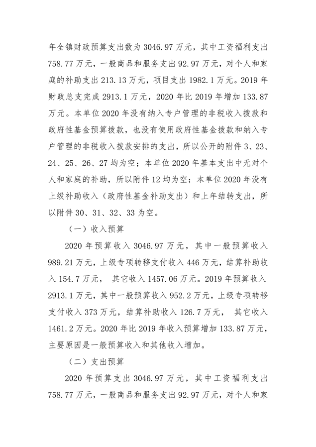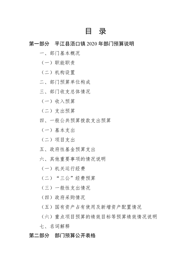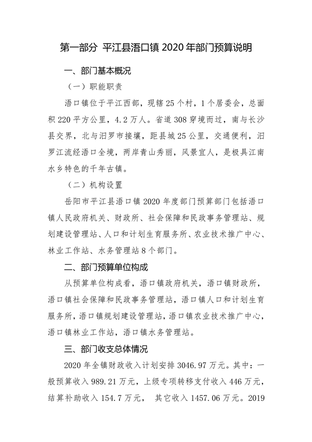 平江县浯口镇2020年部门预算编报说明