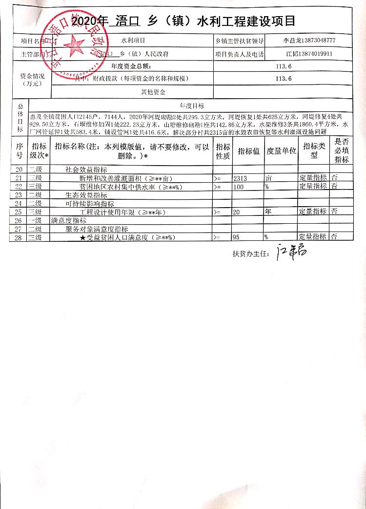 2020年浯口镇水利工程建设项目