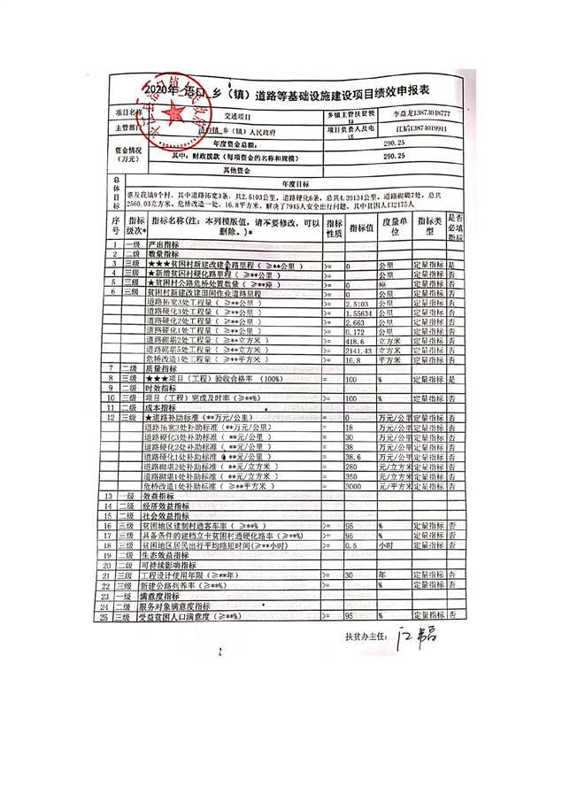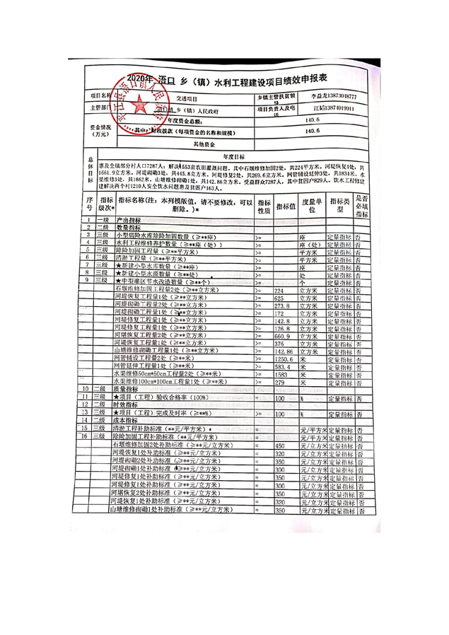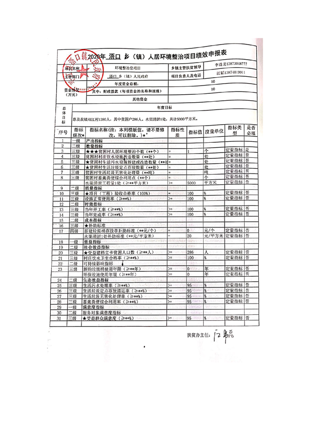 浯口镇2020年统筹整合涉农资金项目库预算绩效申报表