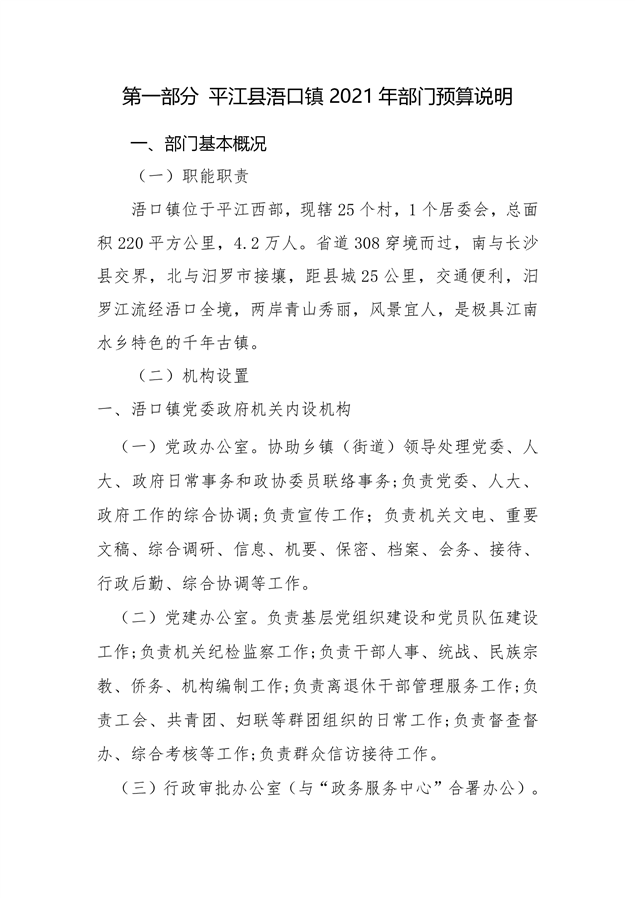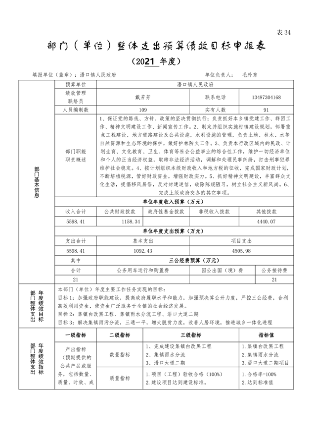 浯口镇2021年预算绩效说明及整体绩效目标公开公示