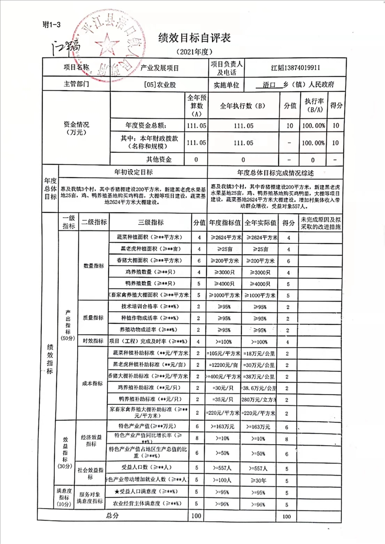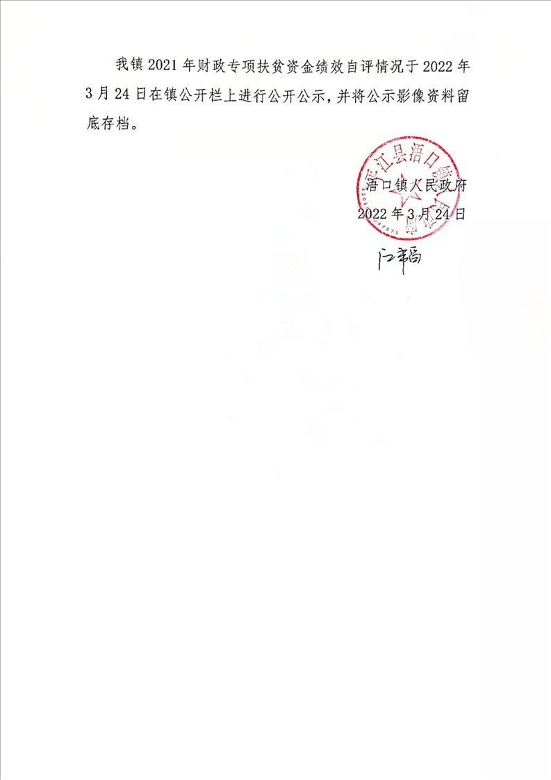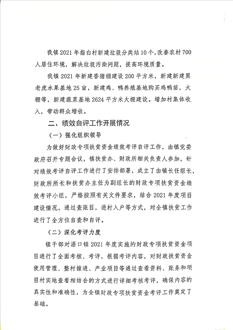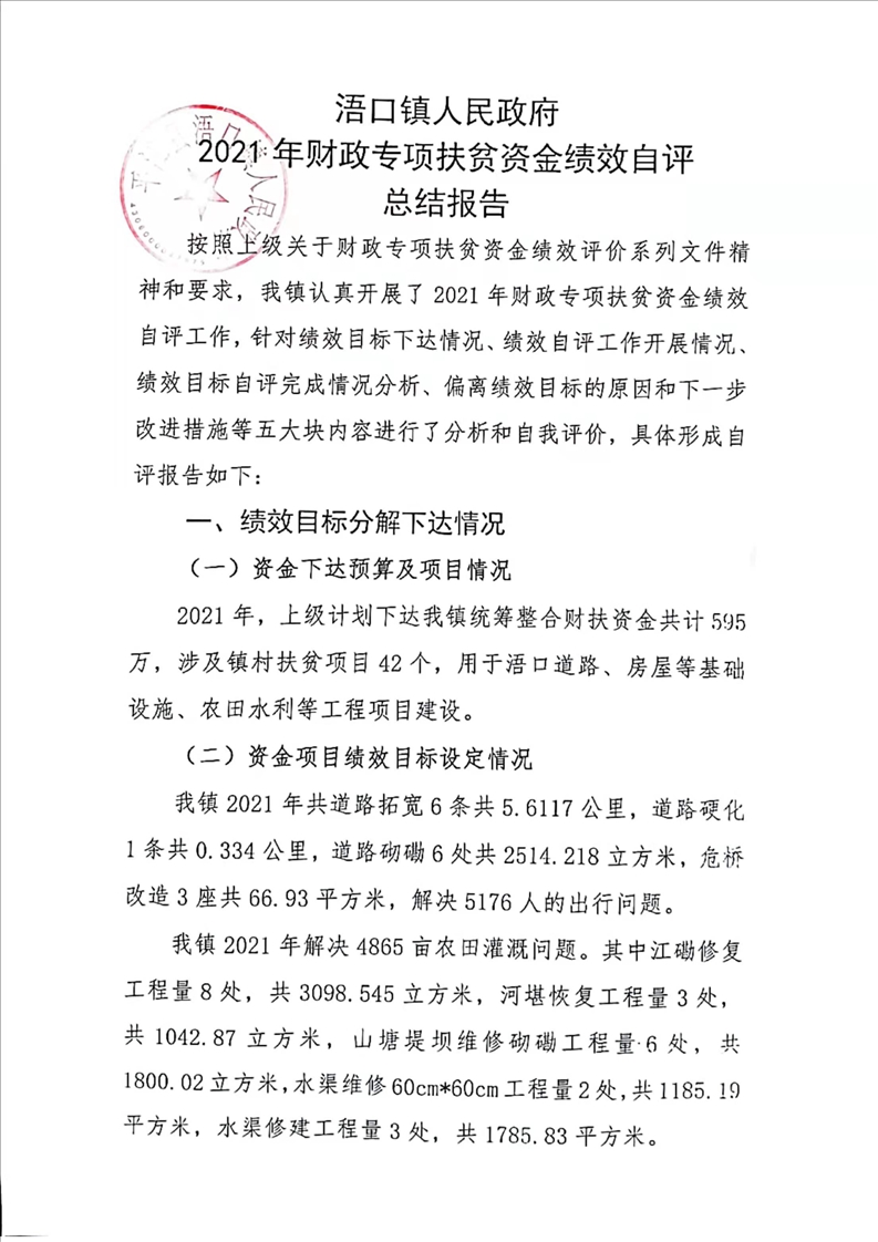 浯口镇人民政府2021年财政专项扶贫资金绩效目标自评表及自评报告