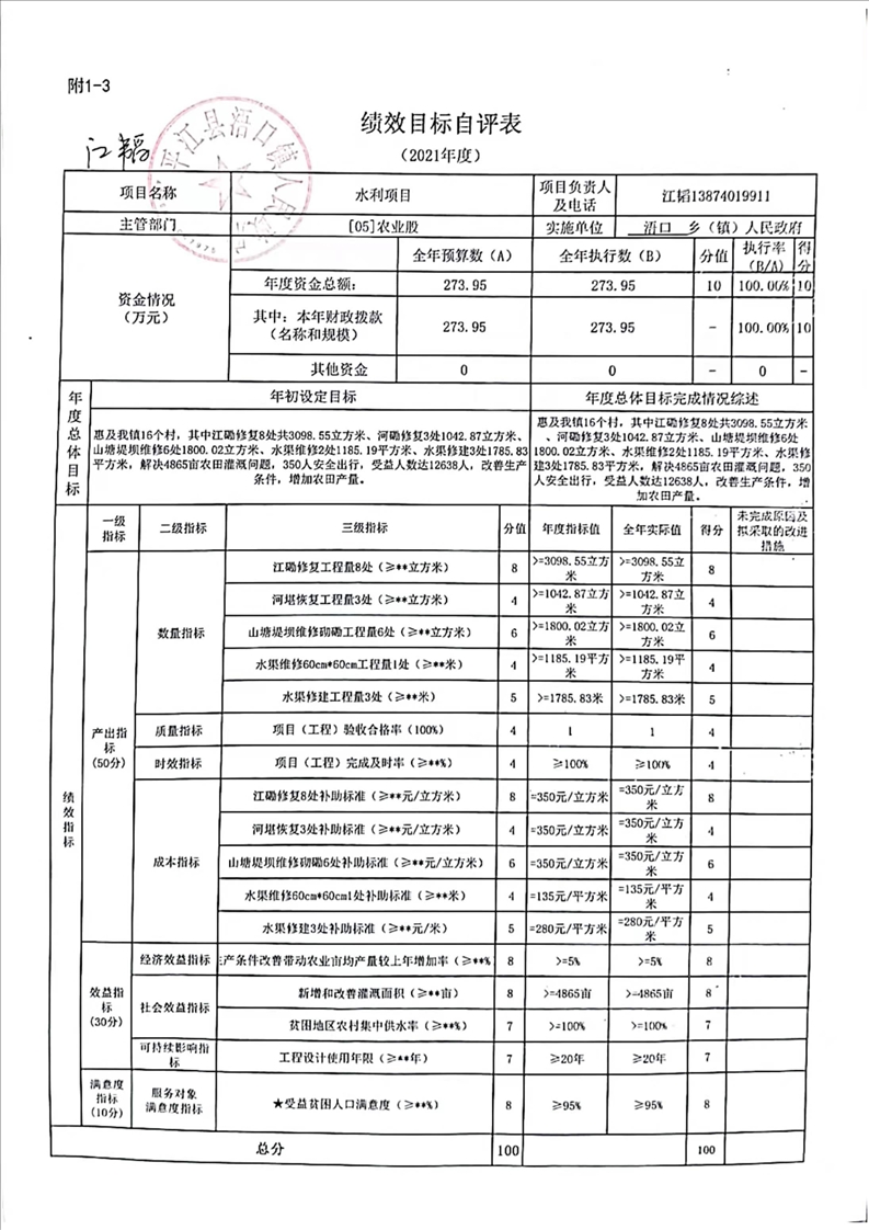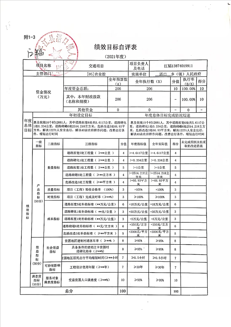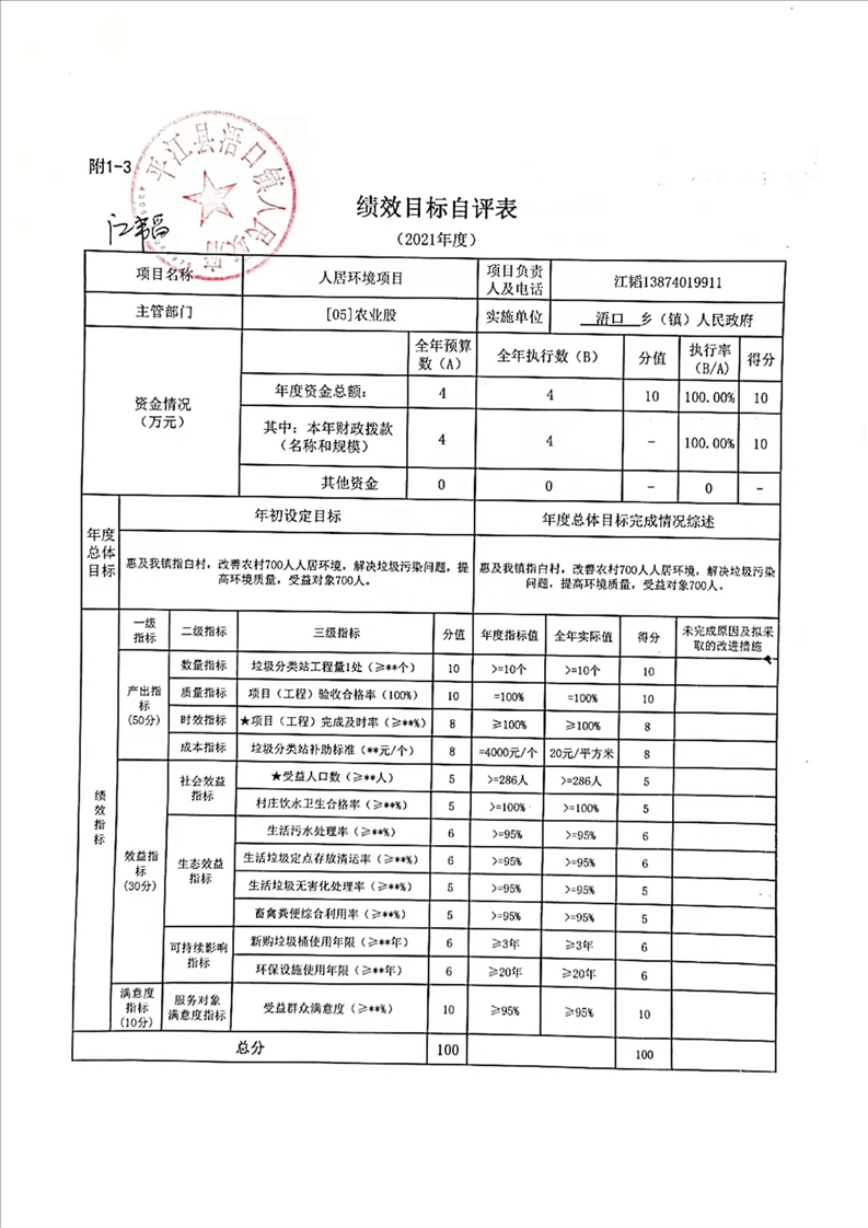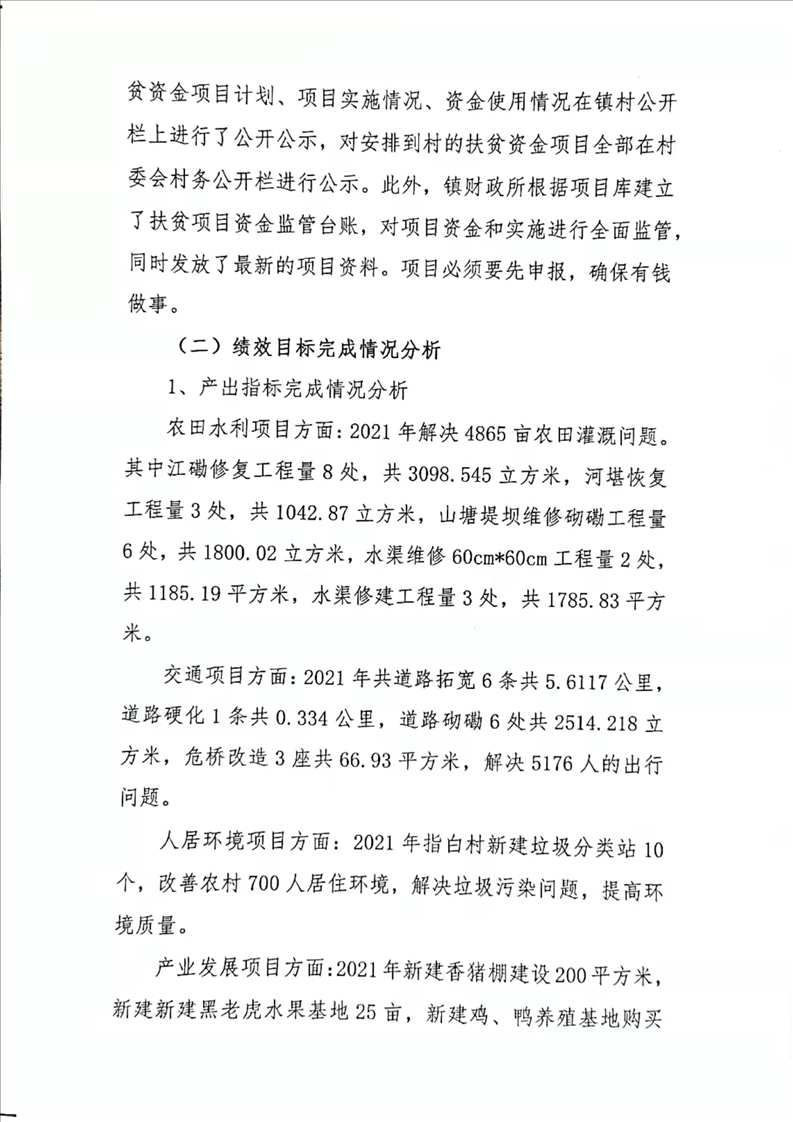 浯口镇人民政府2021年财政专项扶贫资金绩效目标自评表及自评报告