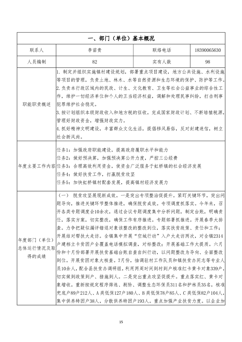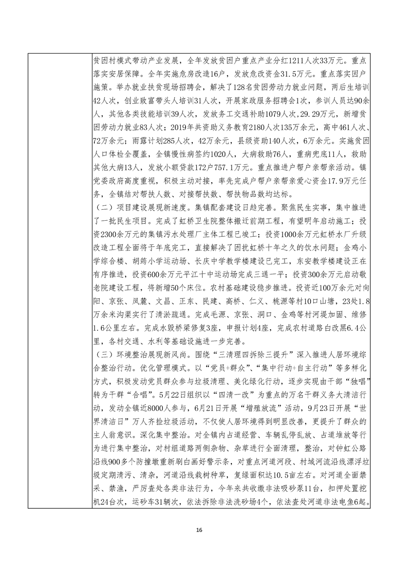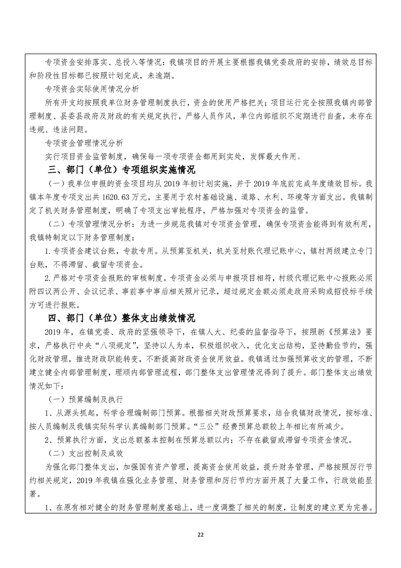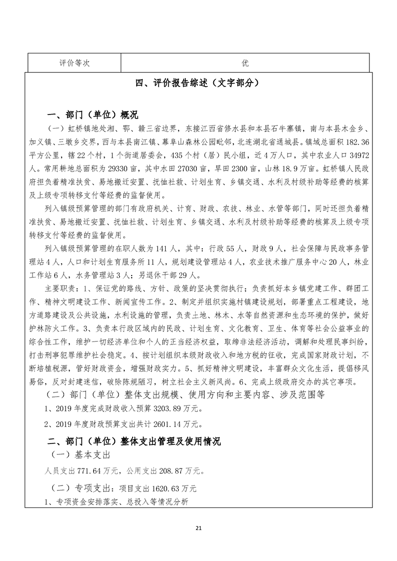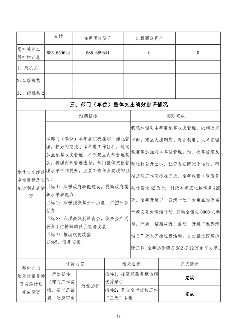 平江县虹桥镇2019年部门整体支出绩效评价自评报告
