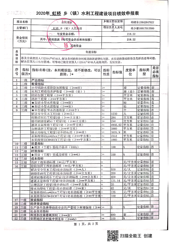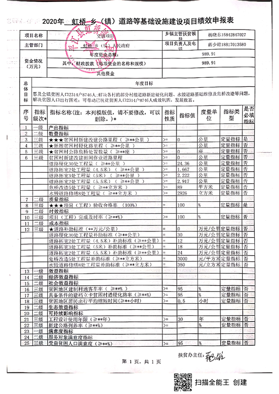 虹桥镇2020年统筹整合涉农资金项目库预算绩效申报(调整)