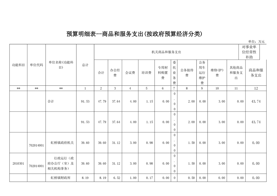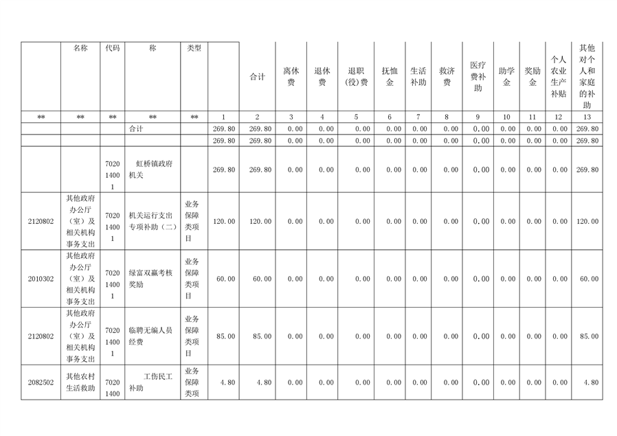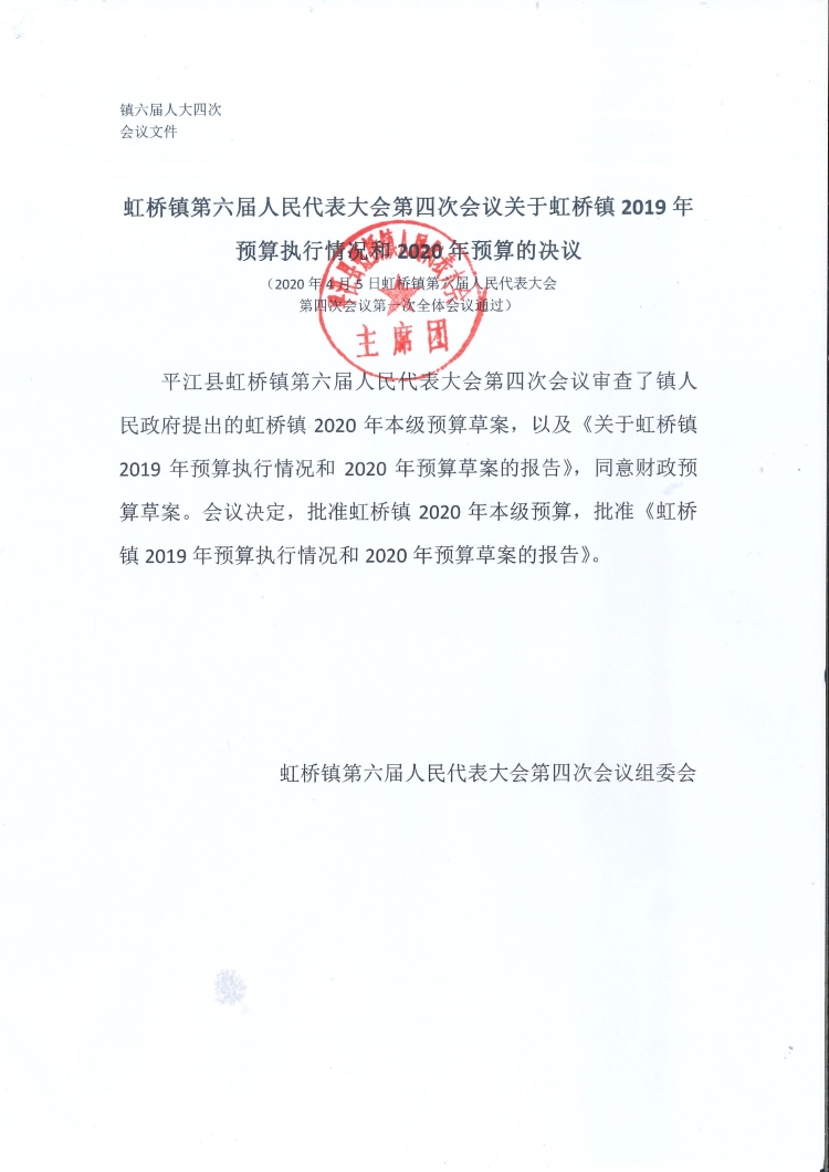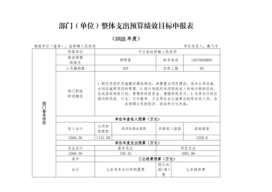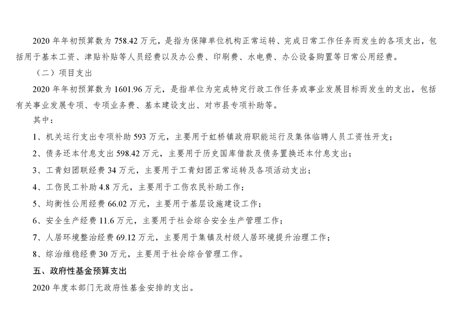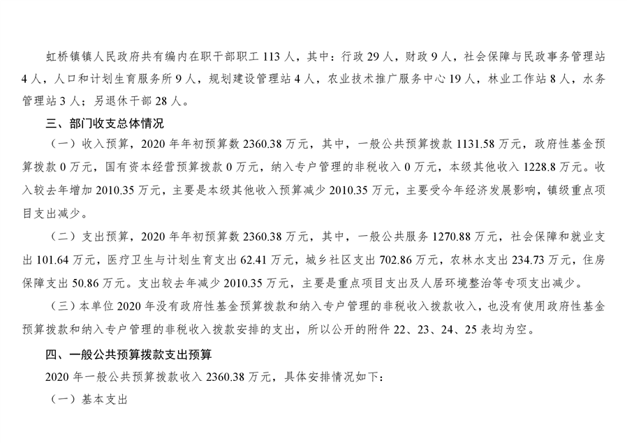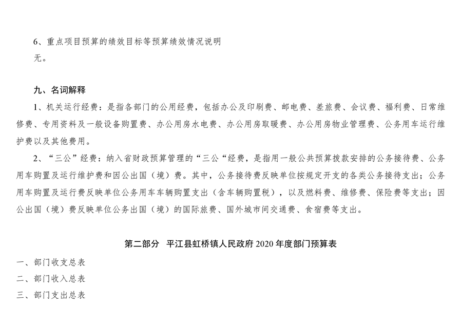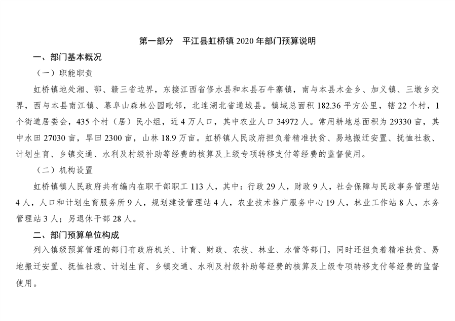 平江县虹桥镇2020年部门预算公开说明