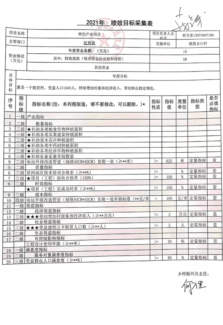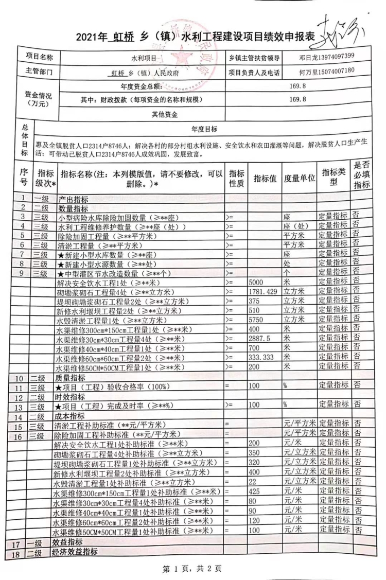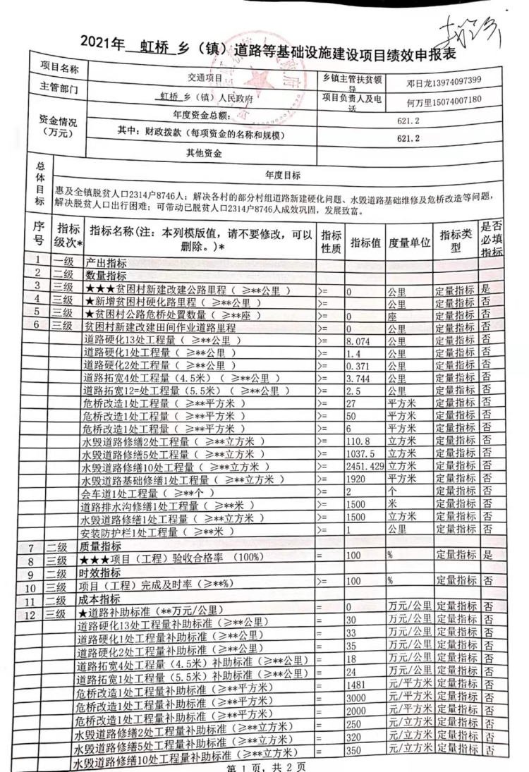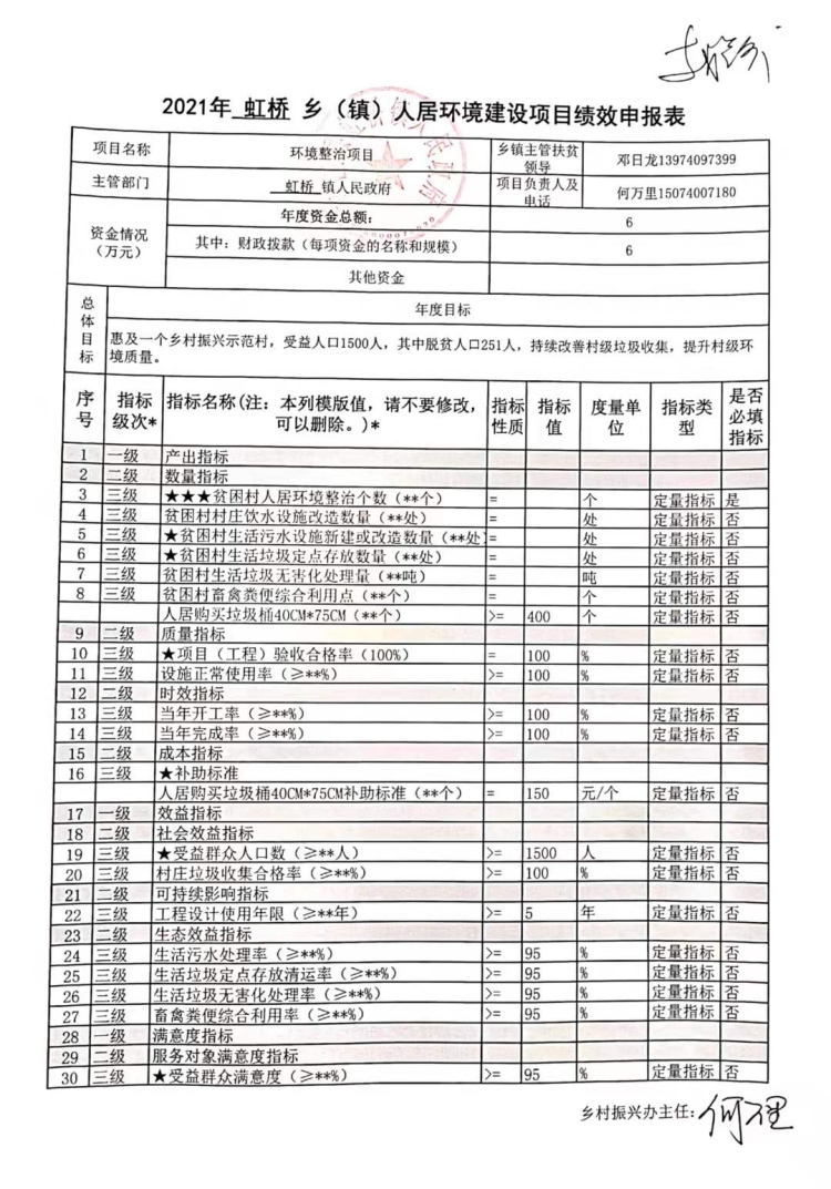 虹桥镇2021年度统筹整合财政涉农资金项目库绩效申报表