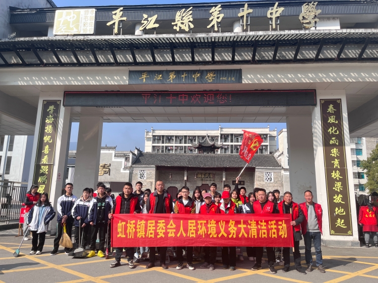 为增强辖区青少年关爱家园、保护环境的意识,2月20日下午,虹桥镇居委会新时代文明实践站联合平江十中团委30余名志愿者开展“清洁家园”社区志愿服务行动。