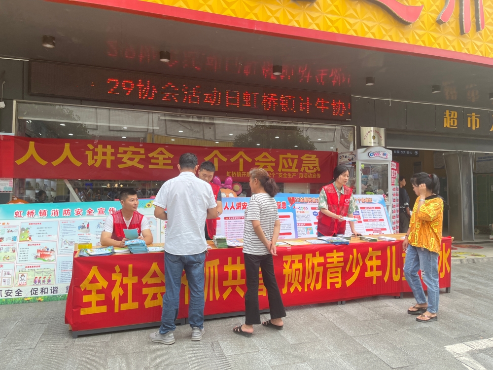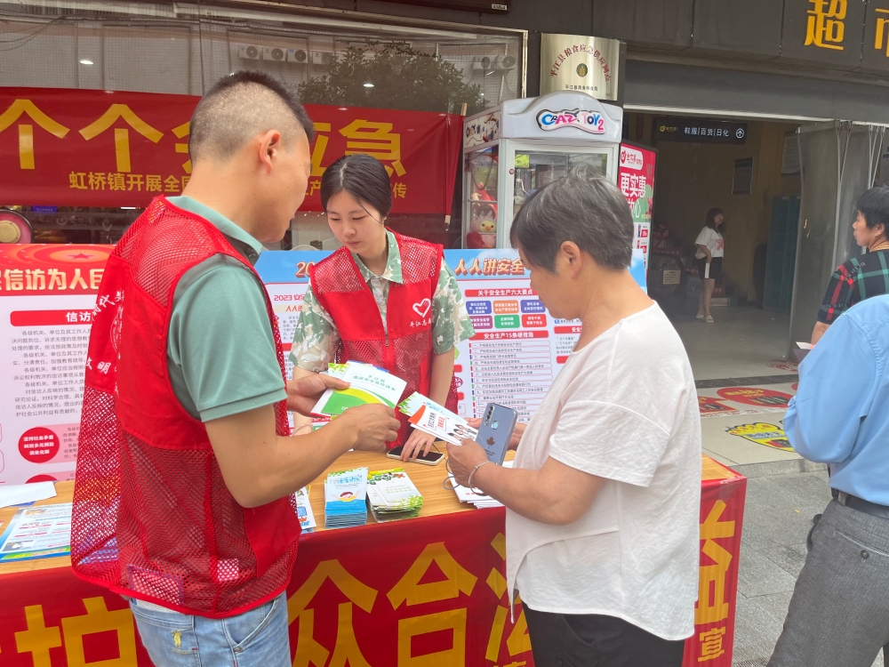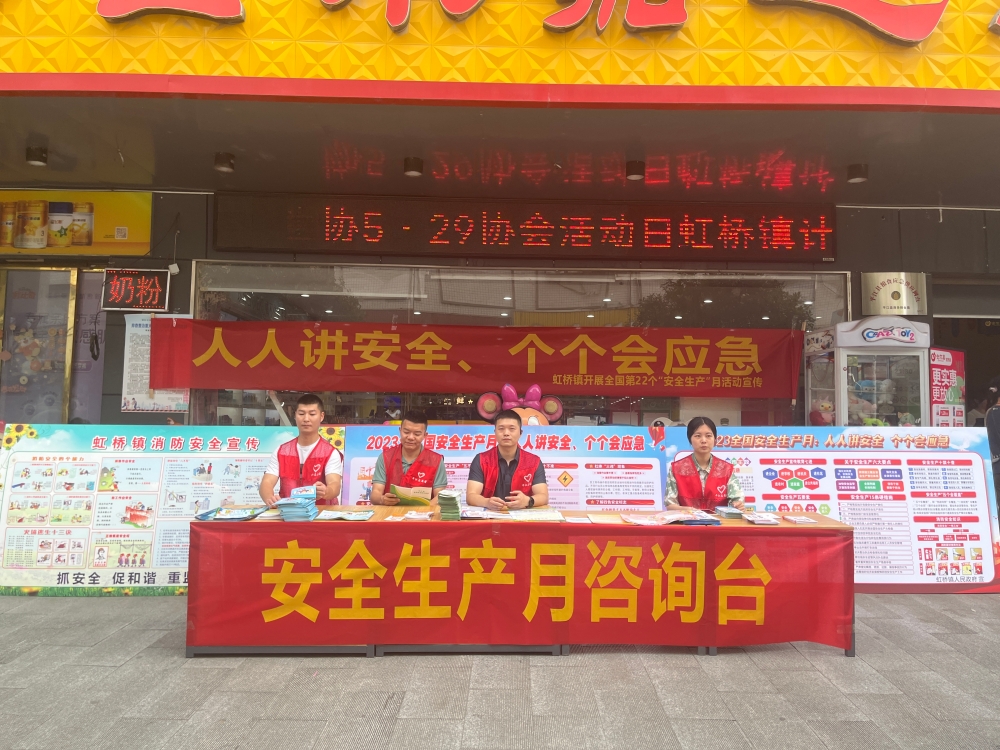 今年6月是第22个全国“安全生产月”,为切实做好安全生产宣传工作,提高社区居民安全防范意识,6月15日,虹桥镇安全生产办联合虹桥镇新时代文明实践所志愿者在金尔嘉超市前坪开展以“人人讲安全,个个会应急”为主题的安全宣讲活动。