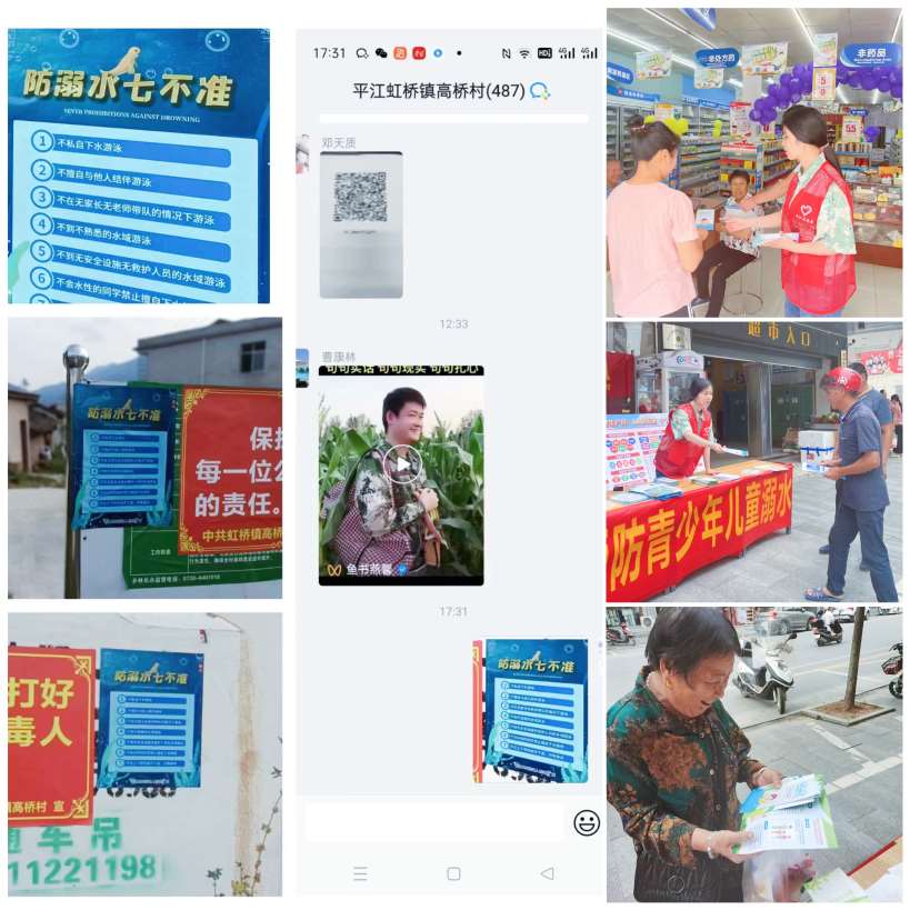 三、引导在先,宣传教育到位。党员化身“三员”。结合“四亮创建”、“启明星光 党员就在你身边”主题活动开展,党员化身为“拉网式”提醒宣传员、“全方位”劝阻劝导员和“全天候”巡查安全员,形成以支部引领,党员带头、干群齐动的防溺水网络;走访做实 “三进”。持续开展“群英断是非”民情大走访活动,将防溺水宣传进村(社区)、进学校、进家庭。相继到胡筠小学、平江十中等学校开展防溺水安全讲座,制定并下发了《关于预防学生溺水致全镇中小学生家长的信》,共计发放且收回回执4589份,切实增强了学生的安全意识和家长监管意识;宣传采取“三样”。采取电话、线上、线下三种宣传方式,重点关注困境儿童、留守儿童、孤儿等特殊群体,以入户或电话等方式开展防溺水安全宣传,同时借用微信群、公众号、村村响、宣传手册、标语横幅等方式宣传防溺水安全常识知识和警示教育,切实营造全镇预防青少年儿童溺水的良好氛围。