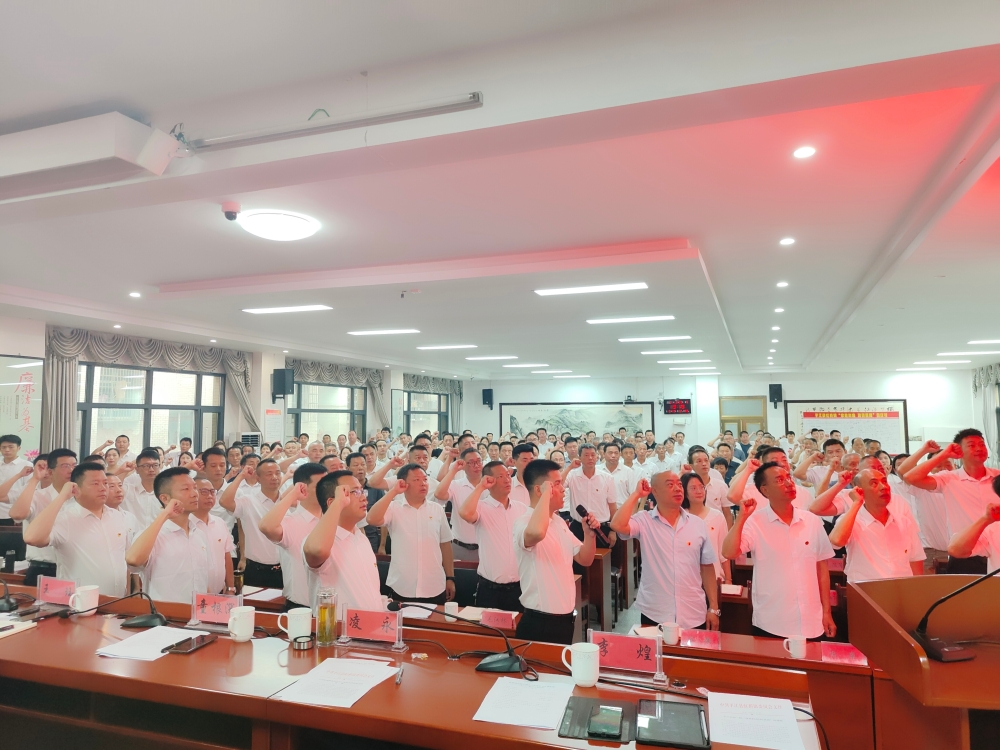 全体起立,奏国歌!6月30日上午,在庄严肃穆的国歌声中,虹桥镇庆祝中国共产党成立102周年暨“七一”表彰大会拉开了帷幕,会议由镇党委副书记、镇长吴一军主持,全体负责干部、机关党员、市县驻村第一书记、各村(居)支部书记、相关部门支部书记、全体纳新对象,受表彰的“两优一先”和“最美走访者”对象共计208人参加会议。