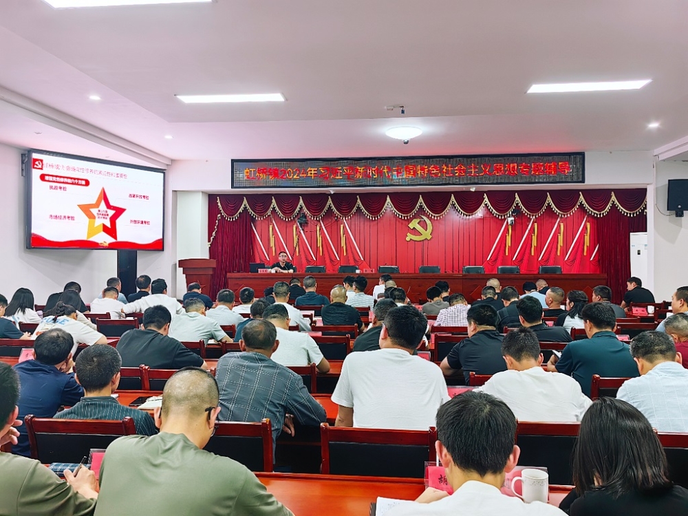 为扎实推进学习贯彻习近平新时代中国特色社会主义思想落实落细,5月13日晚,县委党校校长余庆东到虹桥讲授专题党课,会议由镇党委书记郑崛主持,虹桥镇全体党政班子成员、机关干部职工、村(社区)支部书记、镇直部门负责人聆听党课。