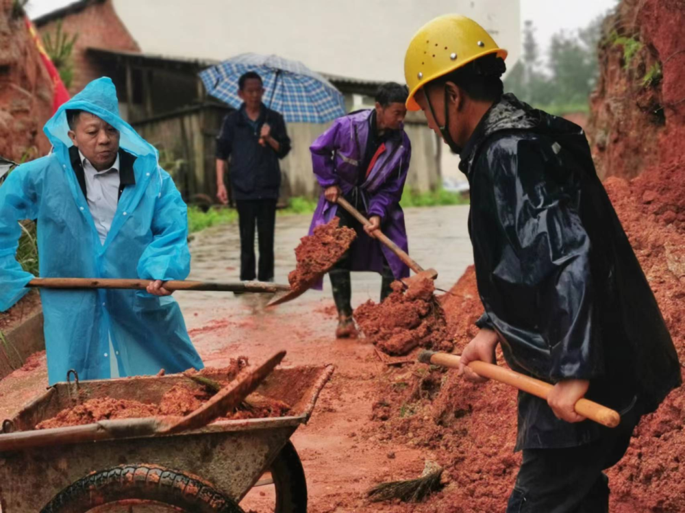 6月25日,平安村党员先锋队党员李天固在巡查谭家庄安置点的过程中发现一处道路山体坍塌,严重阻碍人员交通通行,支部书记李劲松在收到通知后,第一时间紧急调度,县自然资源局驻平安村工作队队员、平安村办村干部、平安村党员干部齐上阵就地成立防汛救灾队,大家齐心协力,热情高涨,不到两个小时时间便完成道路疏通。