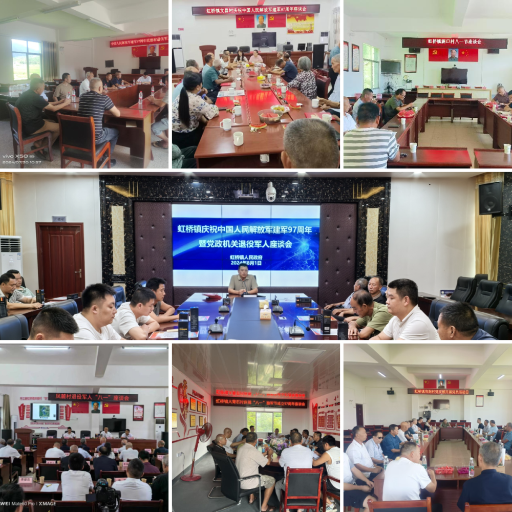 8月1日,虹桥镇以村、部门为单位召开纪念建军97周年座谈会,镇级会议由虹桥镇人大主席赵行军主持,会上各退役军人畅所欲言,分享自身退役后投身基层事业的经历,表达对于退役军人工作的种种建议。
