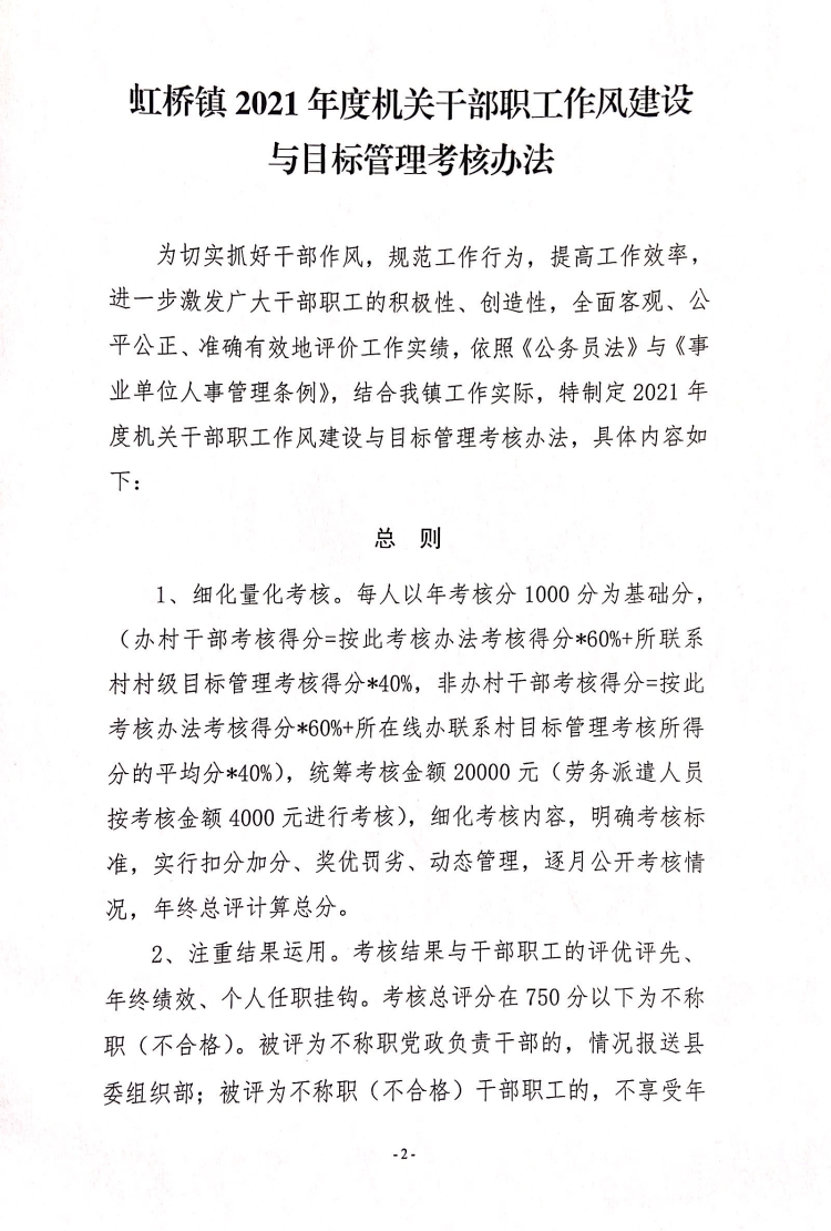 虹桥镇2021年度机关干部职工作风建设与目标管理考核办法