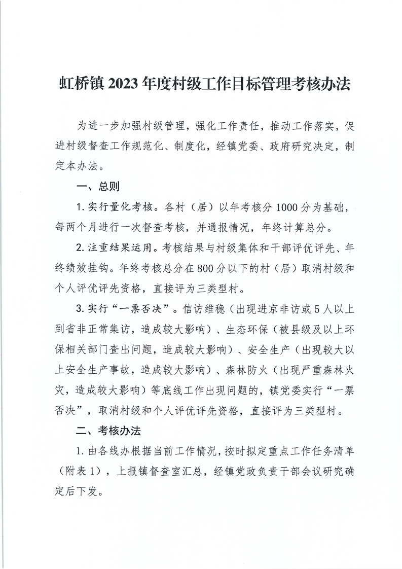 关于印发《虹桥镇2023年度村级工作目标管理考核办法》的通知