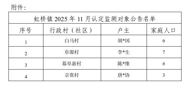附件:虹桥镇2025年11月认定监测对象公告名单